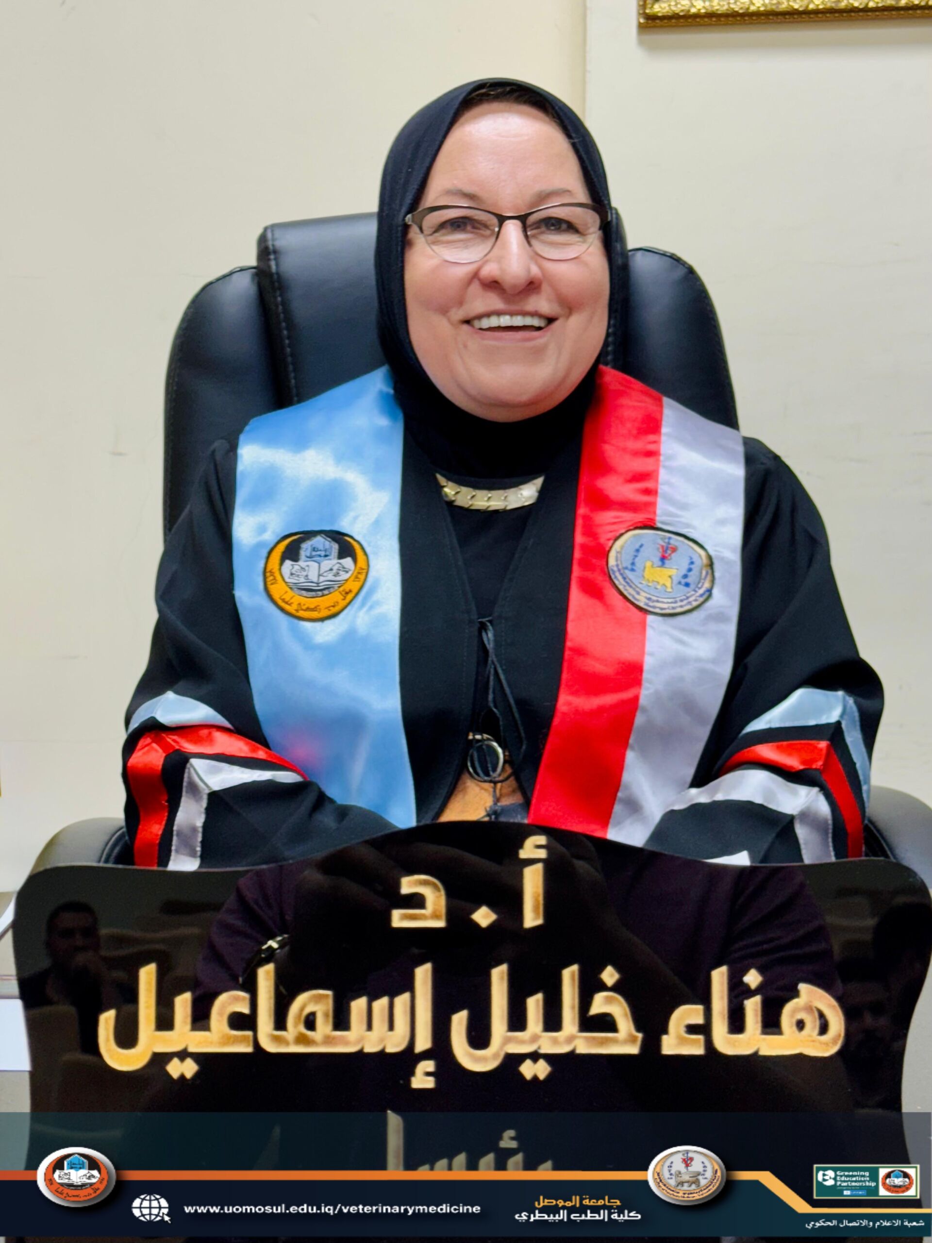 1- أ.د.هناء خليل إسماعيل (كلية الطب البيطري- جامعة الموصل) – رئيساً .