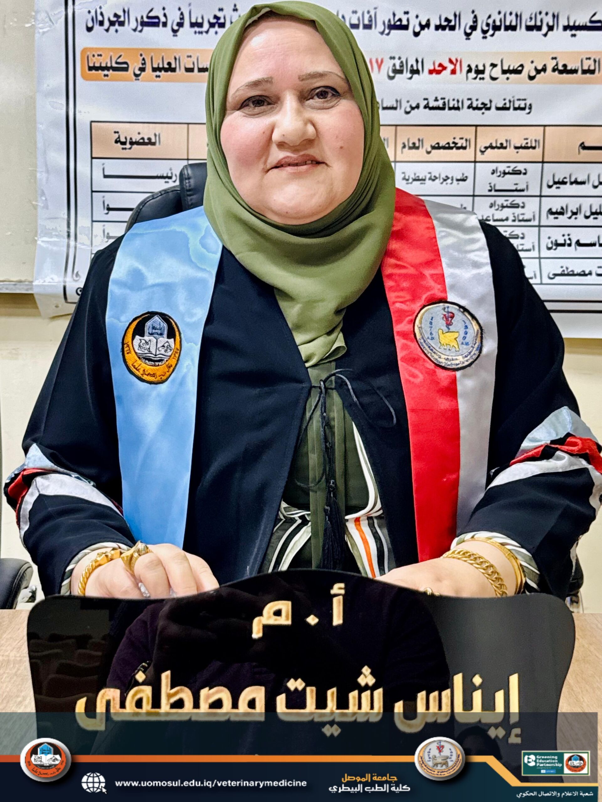 4- أ.م. إيناس شيت مصطفى (كلية الطب البيطري- جامعة الموصل) – عضواً ومشرفاً.