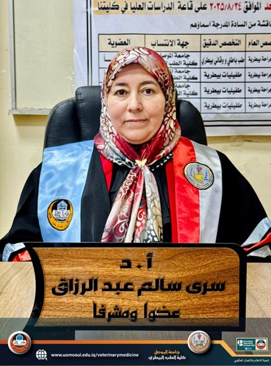 4- أ.د. سرى سالم عبدالرزاق (كلية الطب البيطري- جامعة الموصل) – عضواً ومشرفاً.