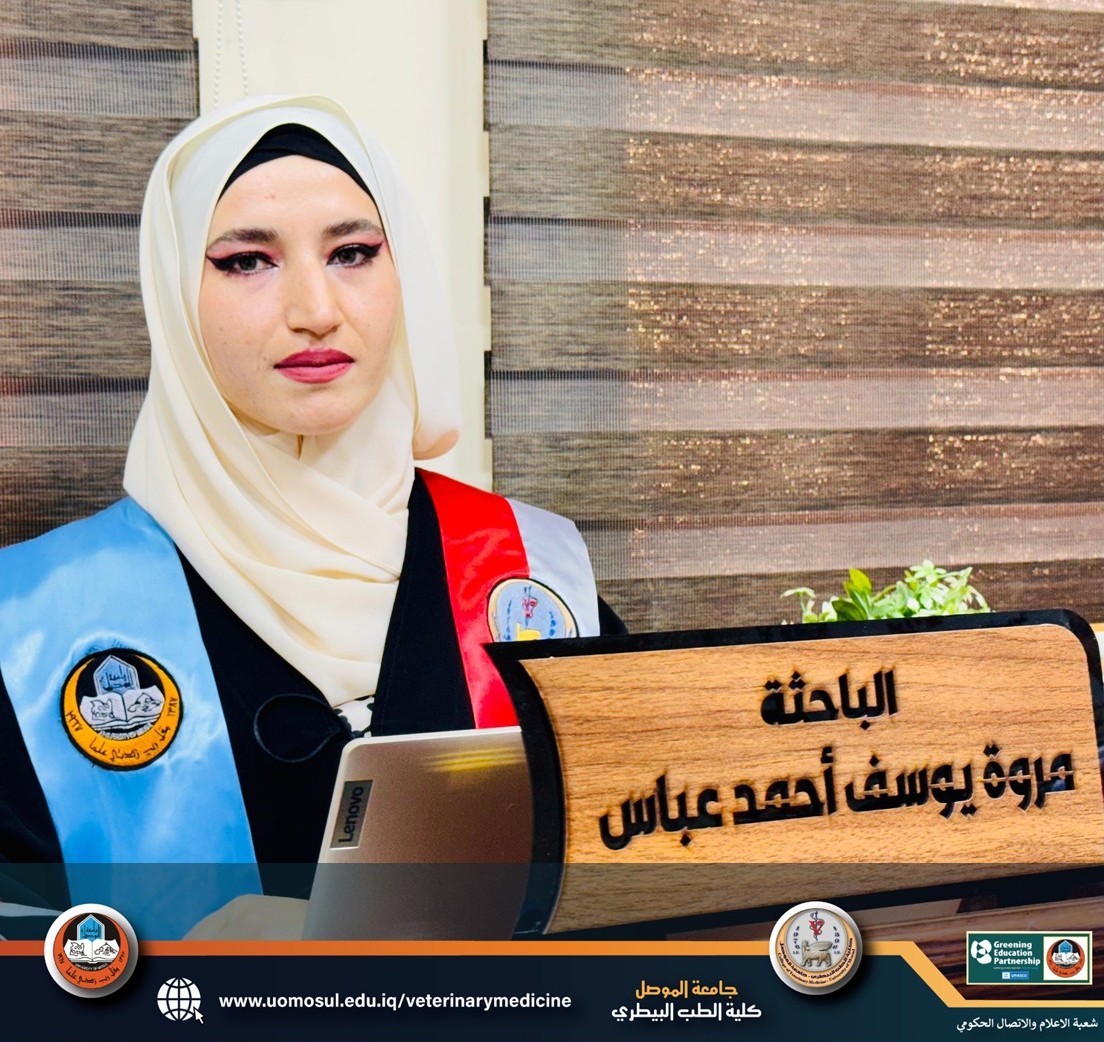 مناقشة رسالة ماجستير في كلية الطب البيطري فرع الاحياء المجهرية بعنوان (العزل والتوصيف الجيني للفايروسات التاجية المعوية الكبية) للطالبة (مروة يوسف احمد عباس) وبأشراف (أ.د. صفوان يوسف محمود) يوم الاحد 7 أيلول 2025.