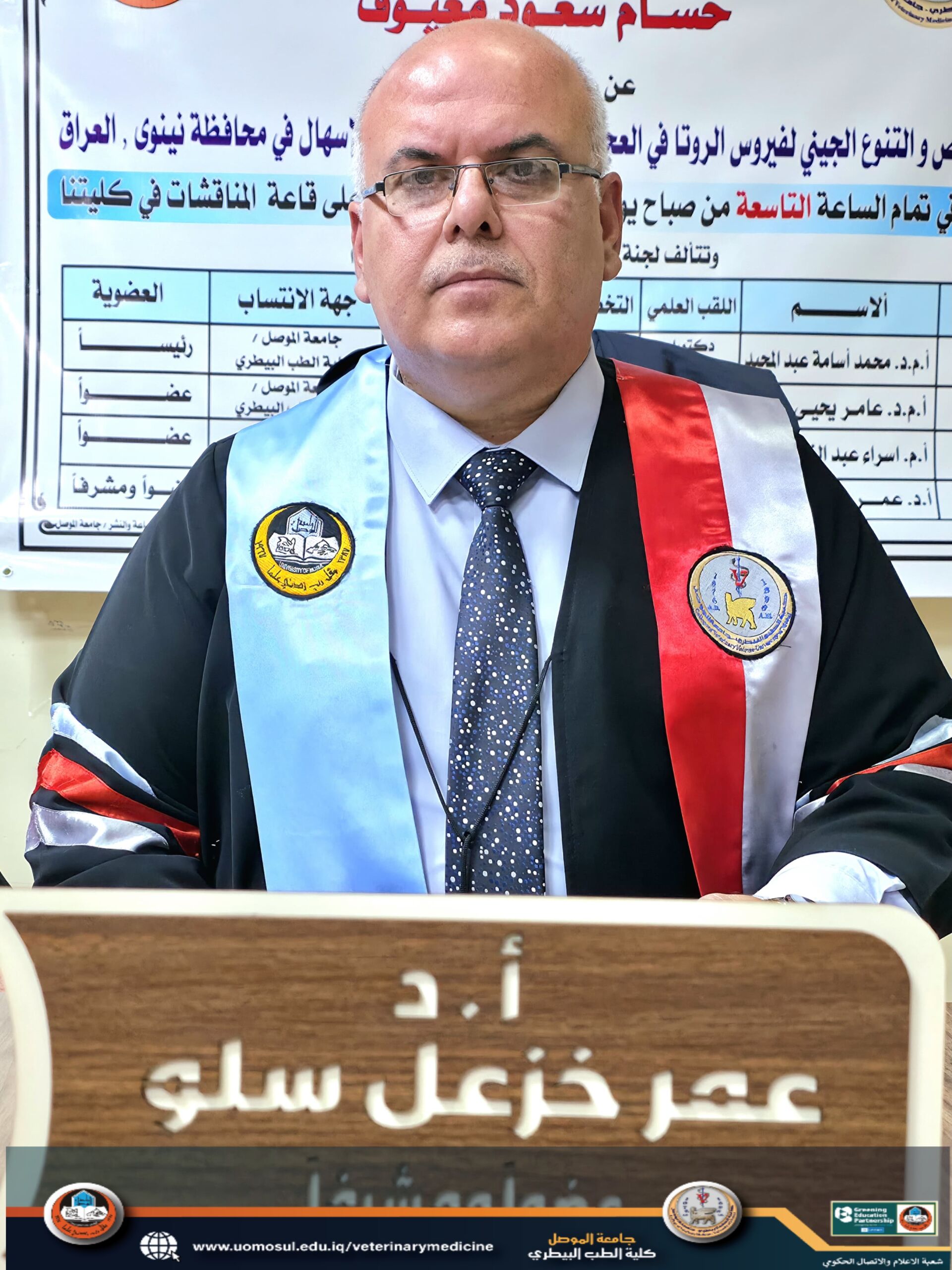 4- أ.د. عمر خزعل سلو (كلية الطب البيطري- جامعة الموصل)- عضواً ومشرفاً.