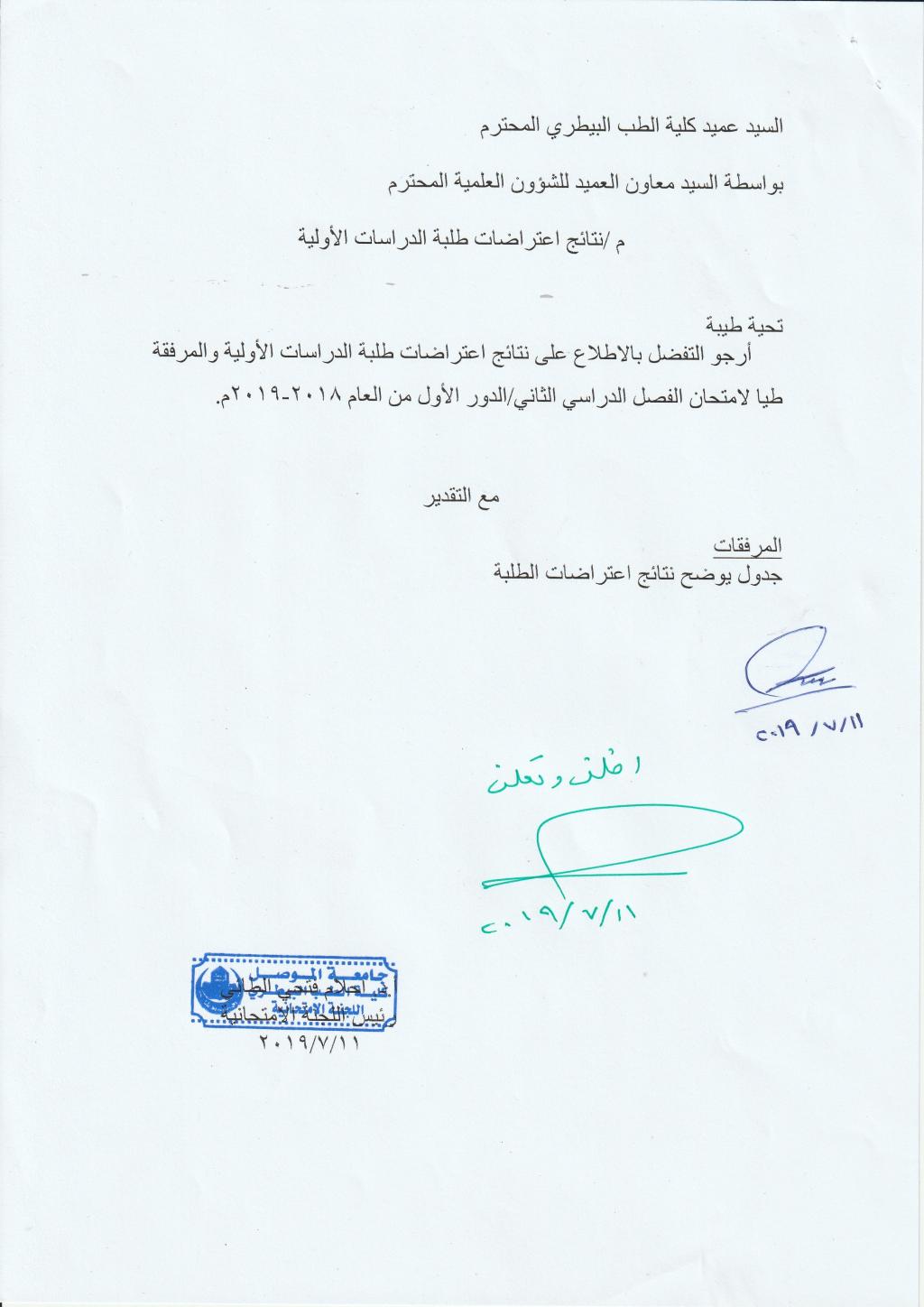 الاعتراضات على نتائج الدور الاول / الفصل الدراسي الثاني