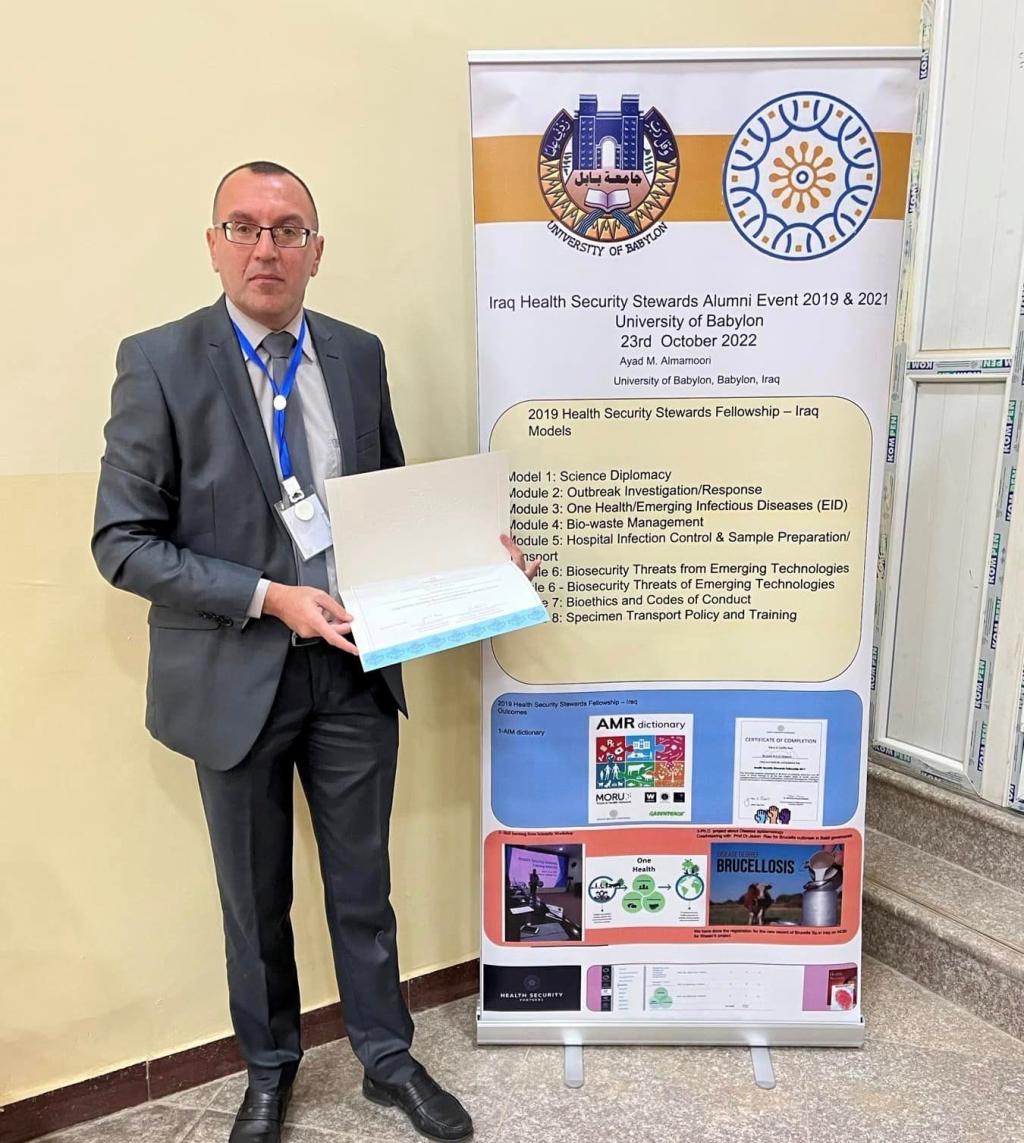 نشاطات اساتذة الكلية===============حصل أ. م. د. معن سمير كلو على شهادة دبلوم في الأمن الحيوي والسلامة المختبرية من قبل منظمة Health Safety Partner الأمريكية. يذكر أن الكورس شمل دراسة وتدريب مكثفين لمدة سنتين واجتياز اختبارات عدة تؤهل الدارس ليكون مدربا دوليا في المجالات المذكورة. جاء ذلك في احتفالية نظمت في جامعة بابل بحضور السيد رئيس الجامعة ومدير المنظمة ومدير البرنامج من الولايات المتحدة الأميركية اذ تم توزيع الشهادات على الخريجين المشاركين في الدورات التي أُقيمت …مبارك لدكتور معن هذا الانجاز المهم والمشاركة في رفع مستويات الأمن الحيوي.كل الموفقية لاساتذتنا الاعزاء……
