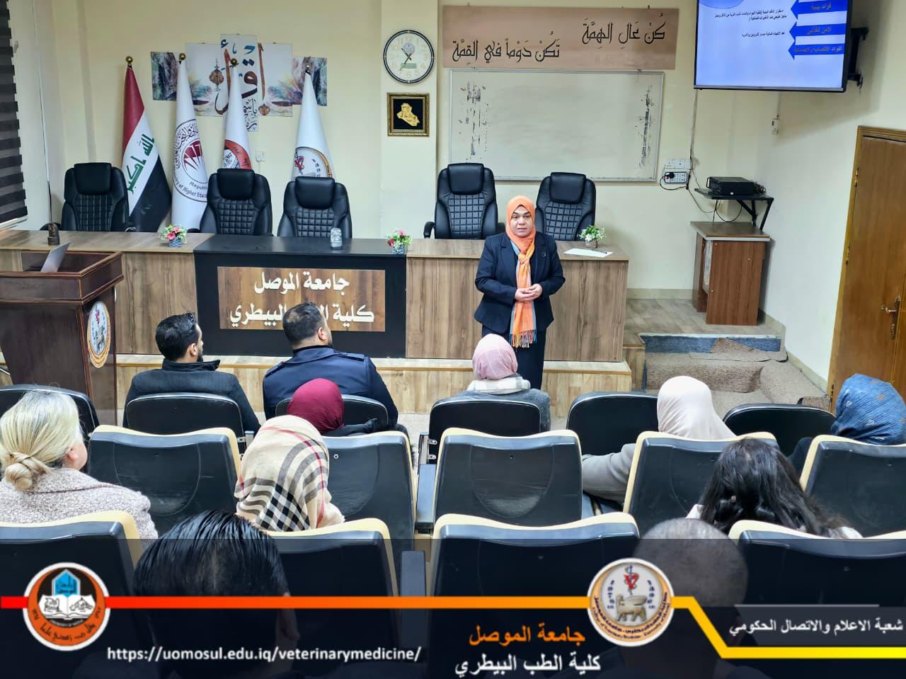 “شبابنا ايقونة الوجود نحو بناء الوطن والمستقبل” ضمن نشاطات وحدة التأهيل والتوظيف بالكلية قام مسؤول الوحدة أ.م.د محمد غسان سعيد بورشة عمل بعنوان:((المبادئ الرئيسية ومفاهيم وحدة التأهيل والتوظيف)),لطلبة المرحلة الخامسة في يوم الاربعاء 16-3-2022 وبحضور متميز من لدن عميد كلية الطب البيطري الأستاذ الدكتور ظافر عزيز.