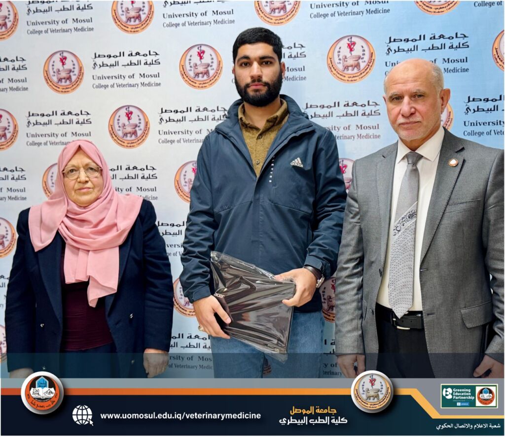1- المدرس المساعد ايمن هاني طه، الاستاذ المساعد الدكتور عمر هاشم شيت والاستاذ الدكتور ضياء محمد طاهر (فرع الصحة العامة البيطرية) بحثهم الموسوم