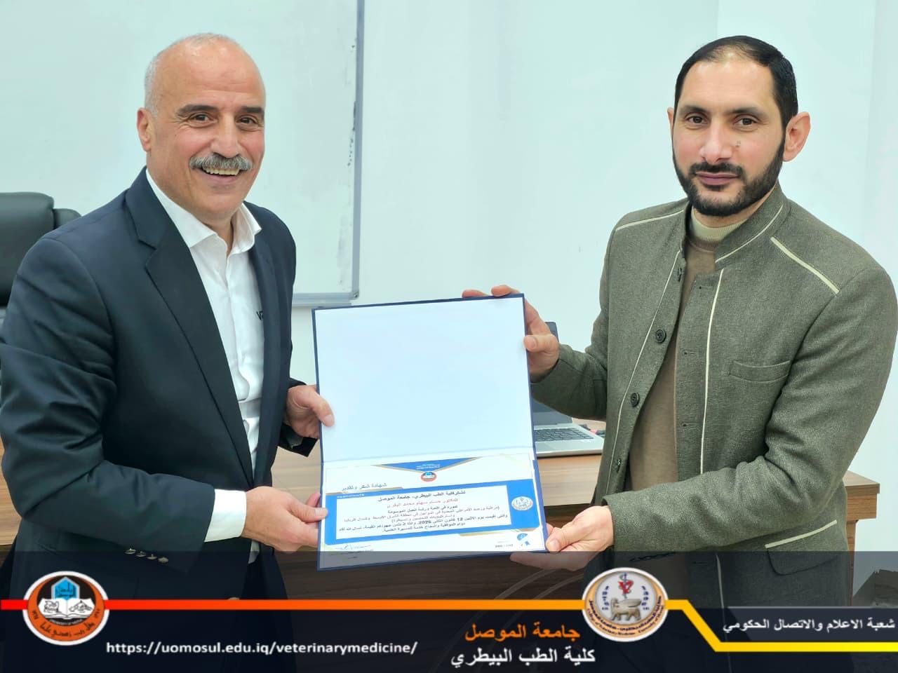 برعاية السيد رئيس جامعة الموصل الأستاذ الدكتور وحيد محمود الإبراهيمي، وبإشراف السيد عميد كلية الطب البيطري الأستاذ الدكتور سيڤان سعد المحمود، أقامت لجنة شؤون المرأة وفرع الأمراض وأمراض الدواجن ووحدة التأهيل والتوظيف في كلية الطب البيطري، وبالتعاون مع قسم الدراسات والتخطيط / وحدة التنمية المستدامة في رئاسة جامعة الموصل، يوم الاثنين الموافق 12 كانون الثاني 2026، ورشة العمل الموسومة: