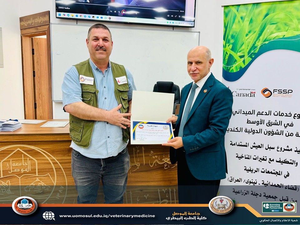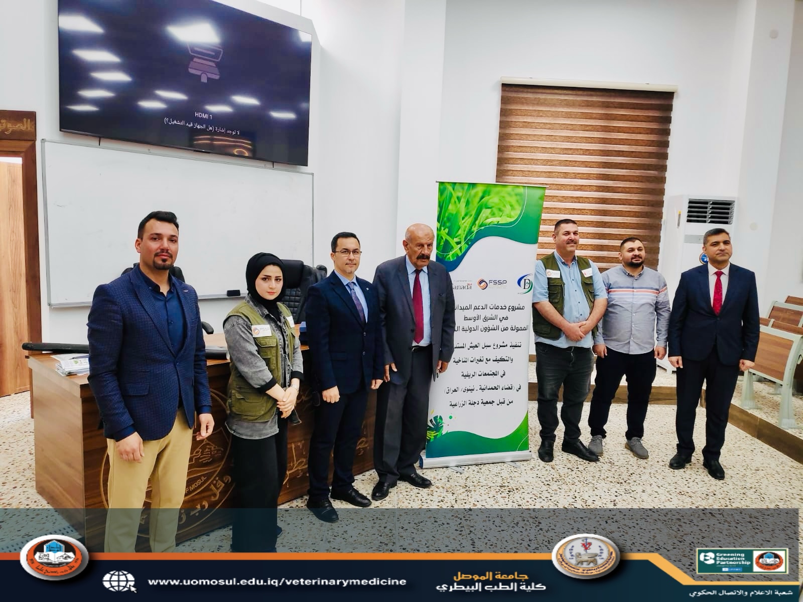 برعاية السيد عميد كلية الطب البيطري الأستاذ الدكتور ظافر محمد عزيز، أقامت وحدة التأهيل والتوظيف والمتابعة وجمعية دجلة الزراعية، وبالتعاون مع رئاسة الجامعة / قسم الدراسات والتخطيط / وحدة التنمية المستدامة، ورشة عمل يوم الأربعاء الموافق 16-4-2025 بعنوان (سبل العيش المستدام و التكيف مع التغيرات المناخية في المجتمعات الريفية) ألقى محاضراتها كل من أ.د ضياء محمد طاهر جوهر و أ.د عارف قاسم حسن ( فرع الصحة العامة البيطرية) والأستاذ علي يعرب (خبير من الجمعية) وتطرقت الورشة الى أهمية البيئة البايولوجية والحيوانية و علاقاتها بالتغيرات المناخية و التنوع البيئي وتناولت كذلك ابرز النقاط عن الصحة الحيوانية واهمية الإنتاج الحيواني للحيوانات المزرعية و علاقتها بالتنمية المستدامة و أخيرا تم التطرق الى أنواع الاعلاف الحيوانية واهمية الاعتماد على الاعلاف الخضراء و من أهمها السيلاج اذا تم تعريفه و أهميته و كيفية تصنيعه.