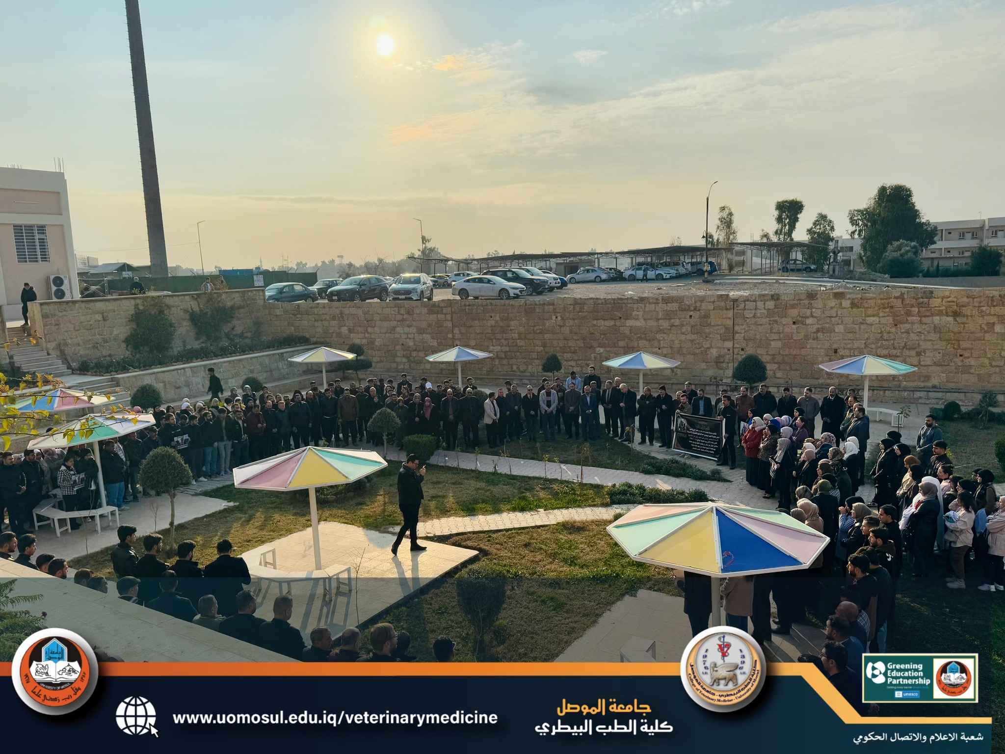 بكل الأسى والحزن، وقف الجميع اساتذة وموظفين وطلبة في وقفة وداع تقديراً واحتراماً للراحل الدكتور عدنان علي حسو (رئيس فرع التشريح)، الذي كان رمزاً من رموز العلم والتفاني والمحبة والعطاء. في هذه اللحظات الصعبة، كانت الكلمات تقف عاجزة عن التعبير عن حجم الفقدان الذي يشعر به الجميع. ووسط دموع الوداع والم الفراق، كان الجميع يرفعون أكف الدعاء، سائلين الله أن يتقبل فقيدهم برحمته الواسعة، وأن يسكنه فسيح جناته.