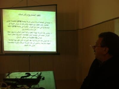 عقدت حلقة نقاشية في مركز بحوث السدود والموارد المائية بعنوان "الدورة التدريبية لتطوير الكادر التدريسي في جامعة يو بي ام الماليزية" للدكتور قتيبة توفيق اليوزبكي (استاذ مساعد) والسيد يعرب ابراهيم سليمان (استاذ مساعد) وذلك في يوم الثلاثاء المصادف 25/12/2012، وقد تناولت الحلقة النقاشية شرح وعرض مفصل لبرنامج التدريب للسادة الباحثين في جامعة يو بي ام الماليزية والذي تضمن محاضرات مختلفة حول العملية التعليمية في الجامعة وكذلك زيارات ميدانية للمختبرات والقاعات التدريسية وزيارات وسفرات علمية الى منشات هندسية وزيارة احد السدود في العاصمة الإدارية لماليزيا وكما تم حضور مؤتمر دولي اقيم في ولاية سيلانكور بتنظيم من جامعة يو بي ام