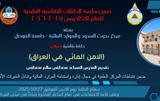 ضمن سلسة الحلقات النقاشية العلمية للعام الاكاديمي 2025- 2026 .يعقد مركز بحوث السدود والموارد المائية – جامعة الموصل حلقة نقاشية بعنوان: (الامن المائي في العراق) تقديم: المدرس المساعد مصطفى سالم مصطفى ستقام الحلقة يوم غد [إقرأ المزيد]