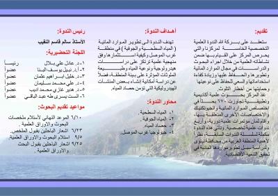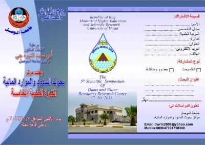 سيعقد مركز بحوث السدود والموارد المائية الندوة العلمية الخامسة (تطوير الموارد المائية غرب الموصل) والتي يحرص المركز على القيام بها ضمن نشاطاته العلمية من خلال اجراء البحوث والدراسات في مجال الموارد المائية وتطويرها والحفاظ عليها وزيادة كفاءة استخداماتها والسعي للحفاظ على نوعيتها وحمايتها من اخطار التلوث،نفذ مركز بحوث السدود والموارد المائية بحوث علمية اكاديمية وتطبيقية تجاوزت 670 بحثاً في اختصاص الموارد المائية والجيوتكنيك والاختصاصات الاخرى المتعلقة بها واقام المركز ثمان مؤتمرات علمية دورية واربع ندوات علمية تخصصية وتاتي هذه الندوة مكملة لسلسلة الندوات السابقة نظرا لاهمية المنطقة الغربية من محافظة نينوى ولدراسة سبل تطوير مواردها المائية في تحقيق التنمية الاقتصاديةاهداف الندوةتهدف الندوة الى تطوير الموارد المائية (المياه السطحية والجوفية) في منطقة غرب الموصل وكيفية استثمارها وفق منهجية علمية ترتكز على دراسات هيدرولوجية ونوعية المياه وطبيعة الملوثات المؤثرة على بيئة المنطقة فضلا عن دراسة امكانية انشاء بعض المنشات الهيدروليكية التي تؤمن حصاد المياهمحاور الندوةالمياه السطحيةالمياه الجوفيةحصاد المياهجيولوجيا غرب الموصلمواعيد تقديم البحوث10/06/2013 الموعد النهائي لاستلام ملخصات البحوث23/06/2013 اشعار الباحثين بقبول الملخص05/09/2013 استلام البحوث25/09/2013 اشعار الباحثين بقبول البحثعلما ان موعد انعقاد الندوة 07/10/2013وتعنون المراسلات الىجامعة الموصل – مركز بحوث السدود والموارد المائيةEmail: [email protected]: 009647481705871