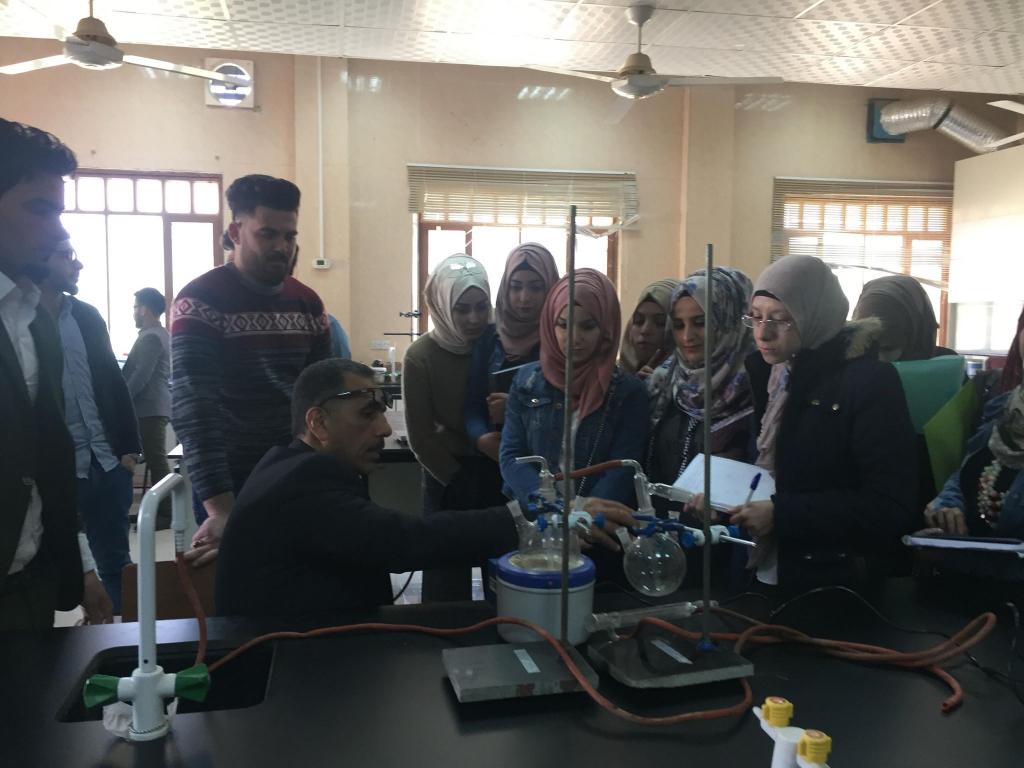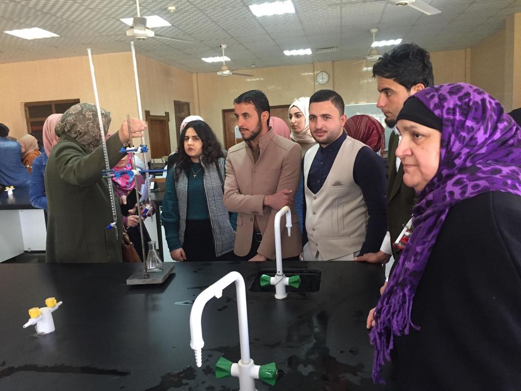 تحت اشراف السيدة عميد كلية التربية للبنات وبإدارة رئيس قسم الكيمياء أ.م.د. فرحة خلف عمر، استضاف قسم الكيمياء في كليتنا يوم الثلاثاء الموافق 5 آذار 2019 مجموعة من طلاب وطالبات قسم الطاقات الجديدة والمتجددة من كلية العلوم وذلك ضمن آلية التعاون بين الكلييتين ، اذ قام كلا من: أ.م.د. ابتهاج زكي سليمان ال حليم وم.د. حامد عبد الله صالح وا.م.د. لبنى عبد العزيز واساتذة في كلية العلوم قسم الطاقات الجديدة والمتجددة بشرح مفصل عن الاجهزة العلمية التي تضمها مختبرات قسم الكيمياء، فضلا عن التعرف على الزجاجيات وكيفية استخامها.