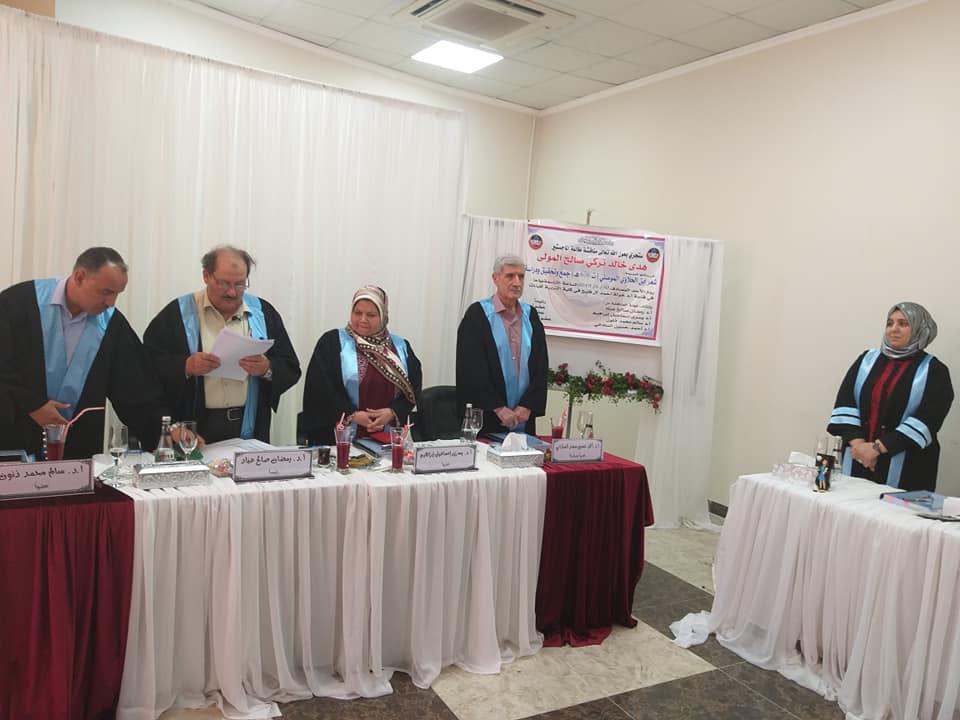 جرت بعون الله تعالى في جامعة الموصل بكلية التربية للبنات / قسم اللغة العربية المناقشة العلنية لطالبة الماجستير هدى خالد تركي عن رسالتها الموسومة بـ : (شعر ابن الحلاوي الموصلي ت٦٥٦ه جمع وتحقيق ودراسة) ، وأجيزت الرسالة بتقدير جيد جدا عالٍ وذلك في صباح يوم الأحد الموافق ٣٠-٦-٢٠١٩ ، على قاعة أ.د. خولة آل فليح .