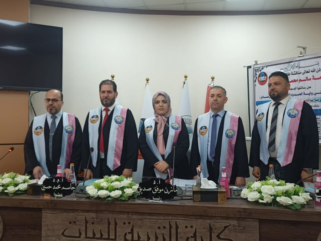 ناقش قسم اللغة العربية بكلية التربية للبنات في جامعة الموصل رسالة الماجستير الموسومة (الدراسات اللغوية والنحوية لأبي عبيد البكري في كتابه معجم ما استعجم) ، للطالبة محاسن حسن خلف، يوم الاربعاء الموافق ٢٦ نيسان ٢٠٢٣ ، في القاعة الإلكترونية بمبنى عمادة الكلية .