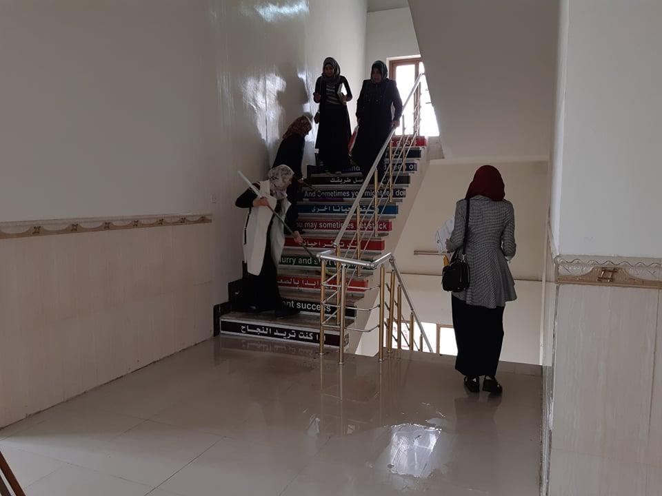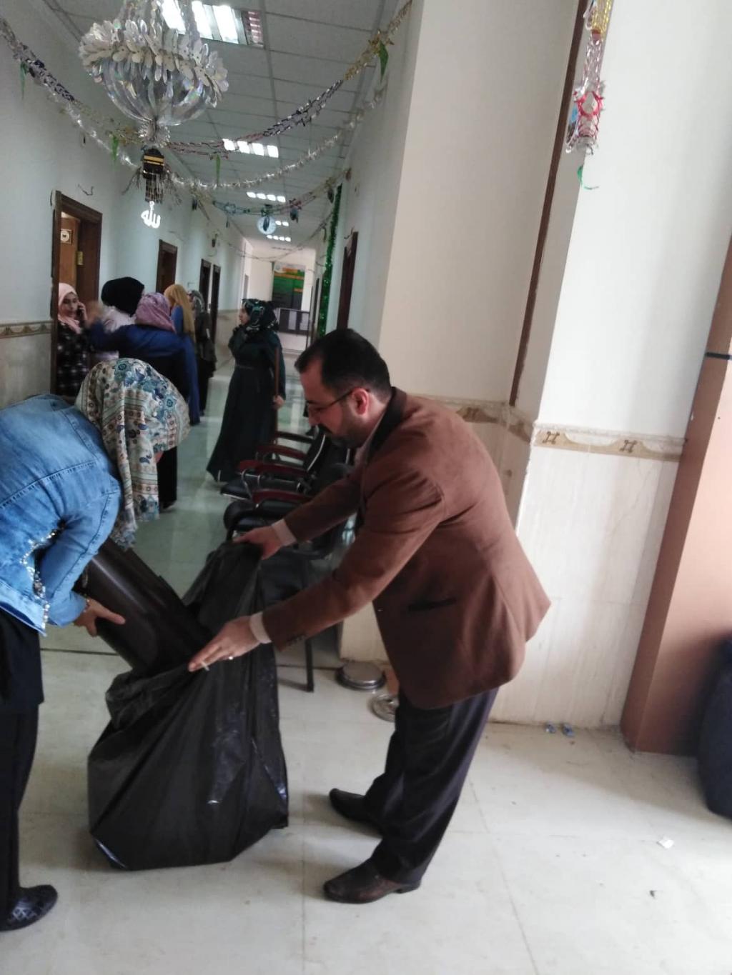 أقسام الكلية تشارك في حملة "من أجل موصل أنظف وأنقى"، إذ انبرى معاوني العميد (العلمي والاداري)، ورؤساء الاقسام وبمشاركة التدريسيين فضلاً عن الطالبات بتنظيف أروقة وقاعات ومختبرات الكلية، فقام د. صالح ابراهيم صالح رئيس قسم علوم القرآن والتربية الاسلامية بادارة حملة تنظيف القسم وقاعاته ومكاتب التدريسيين، كما قامت أ.م.د. فرحة خلف عمر رئيس قسم الكيمياء بالاشراف المباشر لتنظيف المختبرات والقاعات الدراسية، لتعكس نظافة واناقة الطالبات، أما أ.م.د. عدنان عبد السلام رئيس قسم اللغة العربية ود. فؤاد سالم اسماعيل فقد شاركوا الطالبات في حملة تنظيف الحديقة الخارجية لتظهر بالشكل اللائق للكلية، وأما رئيس قسم علوم الرياضة والتربية البدنية أ.م.د. ضمياء علي فقد شاركت الطالبات والتدريسيات في تنظيف وترتيب القاعة الرياضية المغلقة لتكون الانظف والاجمل، وكان لمتابعة أ. محمود عبد الوهاب مدير الادارة الاثر الكبير في تنظيم الحملة لتعكس حرص الادارة على جعل الكلية افضل وانظف مكان للطالبات، فطالباتنا يستحقنّ كل ما هو جميل وانيق.