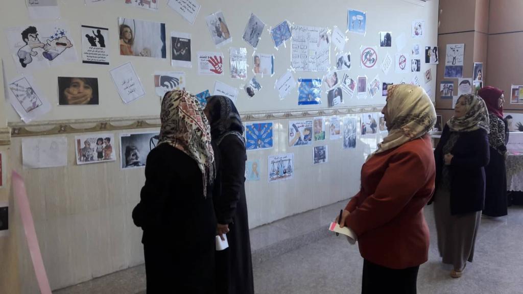 برعاية وحضور من السيدة عميد كلية التربية للبنات أ.م.د. زاهدة عبد الله محمد وتحت اشراف السيدة رئيس قسم الكيمياء أ.م.د. فرحة خلف عمر اُفتتح يوم الاثنين الموافق 15 نيسان 2019 معرضاً للرسوم الفنية للتدريسية الفنانة م.م. سجى فتاح زيدان / كلية التربية الاساسية والمحاضرة في القسم، اذ جسدت الرسومات العناية بالطفل والمرأة ومحاربة كل انواع العنف الأسري الاجتماعي والاقتصادي والانساتي الذي يطال المراة والطفل في هذا المجتمع، كما عبرت بعض الرسومات على دور المرأة في تحمل مسؤولياتها كافة، ومن الجدير بالذكر حضور السيدة معاون العميد للشؤون العلمية أ.م.د. رضاء ناظم حمو ورئيس قسم علوم الحياة د. فؤاد سالم اسماعيل وقسم من التدريسيين والتدريسيات وطالبات الكلية من كافة الاقسام.