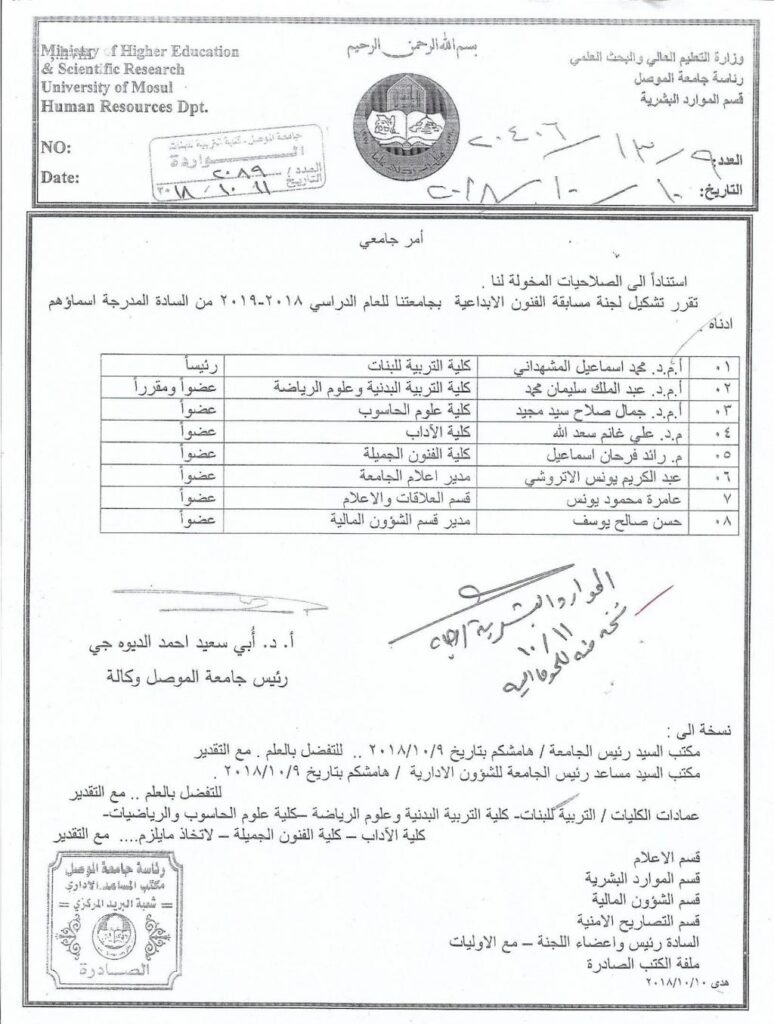 اللجنة العليا لمسابقة الفنون الإبداعية في جامعة الموصل