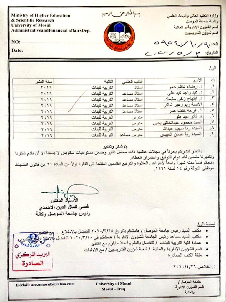اجتمعت السيدة رئيس قسم الكيمياء ا.م.د. فرحة خلف عمر مع طالبات المرhحل الاولى ,الثالثة والرابعة في القسم عبر منصة التواصل Google meet يوم الاثنين ٤ نيسان ٢٠٢٠ ، وبحضور السادة تدريسي المرحلة الأولى كل من: