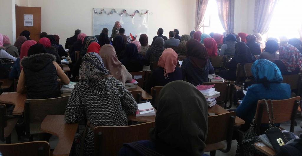 نظمت طالبات قسم اللغة العربية في كلية التربية للبنات بإشراف الهيئة التدريسية احتفالا بمولد خير البرية سيدنا وحبيبنا محمد صلى الله عليه وسلم على قاعة القسم مساء يوم الأحد 15ربيع الأول 1439هـ الموافق 3 /12 /2017م ، وتضمن الاحتفال قراءة آيات من الذكر الحكيم ، وكلمة للدكتور معن توفيق ، ومشاركات وفعاليات متنوعة لعدد من الطالبات المتميزات .