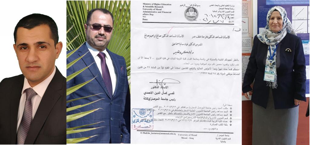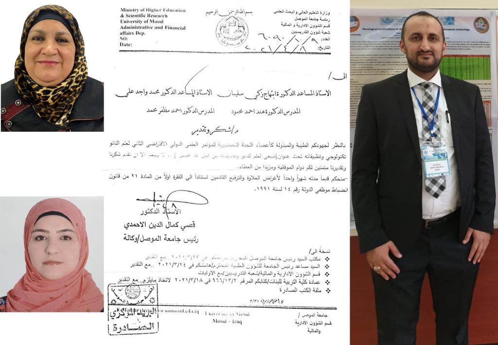 اساتذة من كلية التربية للبنات يحضون بتكريم السيد رئيس جامعة الموصل