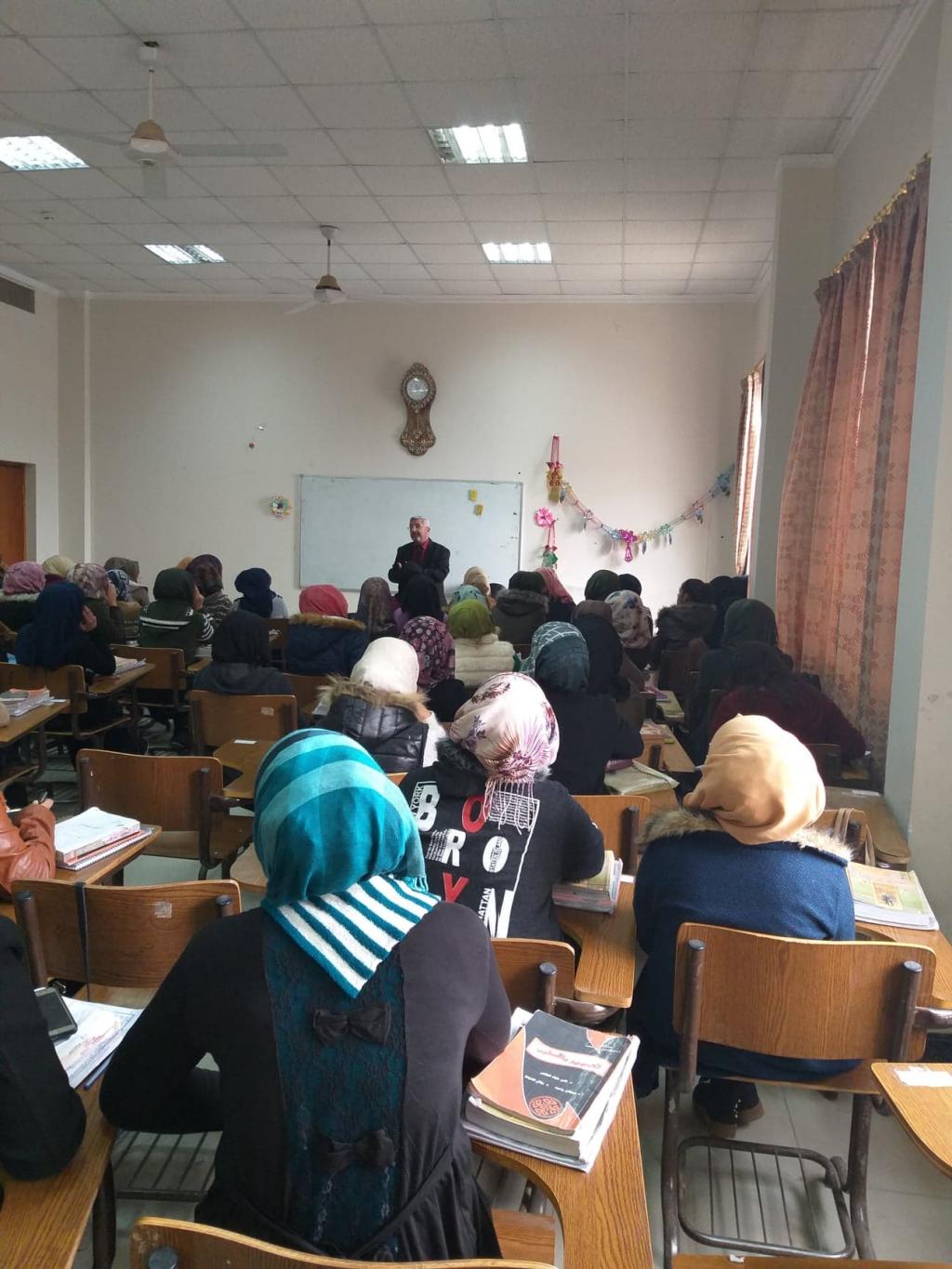 بناء على توجيهات وزارة التعليم العالي والبحث العلمي بضرورة تعزيز المشاريع الوطنية والاقليمية واشراك المؤسسات البحثية والجامعات في المواضيع التي تعالج الاسباب الجذرية للهجرة غير القانونية والنزوح القسري وانشاء تعاون اقليمي بين العراق ودول الجوار… وتحت اشراف السيد رئيس قسم اللغة العريبة أ.م.د. عدنان عبد السلام الاسعد القى م. محمود عبد الخالق البكوع التدريسي في قسم اللغة العربية يوم الخميس الموافق 28 /2 /2019 , محاضرة على طالبات المرحلة الاولى شرح فيها الابعاد السلبية والمتعلقة بالهجرة غير القانونية وكيفية التعاون بين أبناء البلد الواحد بغية الحد من ذلك, وان أعمار الوطن يحتاج إلى تكاتف الجميع ونبذ روح الفرقة والطائفية ، ثم استمع بعدها إلى مداخلات الطالبة ومناقشتها.