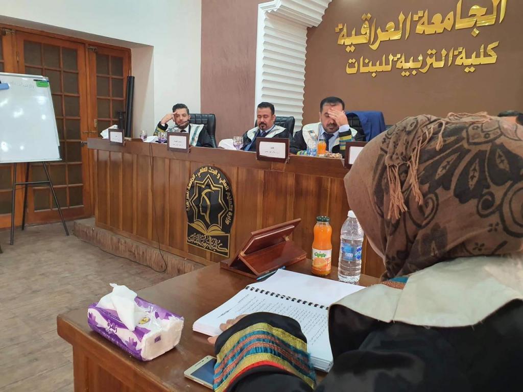 الاستاذ المساعد الدكتور خالد عصام خليل يناقش (الآيات الواصفة للاستهزاء والسخرية في القرآن الكريم) في كلية التربية للبنات / الجامعة العراقية