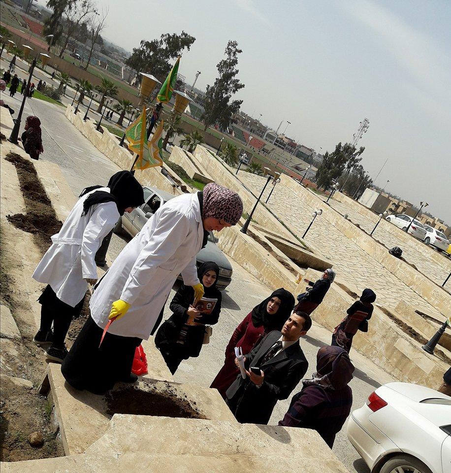 صباح يوم الاثنين الموافق ٥/آذار/٢٠١٨.. تحت اشراف السيدة عميد كلية الترية للبنات تطوع نخبة متميزة من طالبات قسم علوم الحياة مع لجنة الحملة التطوعية للتشجير في كليتنا المتمثلة من نخبة من تدريسيي قسم علوم الحياة (م.د.فراس محمد بشير الخشاب،م.د جيهان يحيى قاسم،م.د.اسرار إسماعيل ياسين، أ.م.ريم زهير شاكر، م.انوار فخري ذنون ،م.مؤيد تحسين يوسف، م.رشا نزار حسون ، م.م.رنا سهيل عبدالله،م.فاطمة حكمت ،م.انعام جاسم ، م.م.زهراء سالم ، م.م.زهراء طارق، م.م.حماد شهاب والدكتور محمد غانم النعيمي/قسم اللغة العربية ).. تم تنظيم العمل من حيث شراء بعض الشجيرات وترتيب مواقع زرع النباتات وتنسيقها وحملة لتنظيف مناطق التشجير من أجل الاستعداد ليوم غد لانطلاق حملة تشجير كليتنا.. ومن الله التوفيق والسداد.