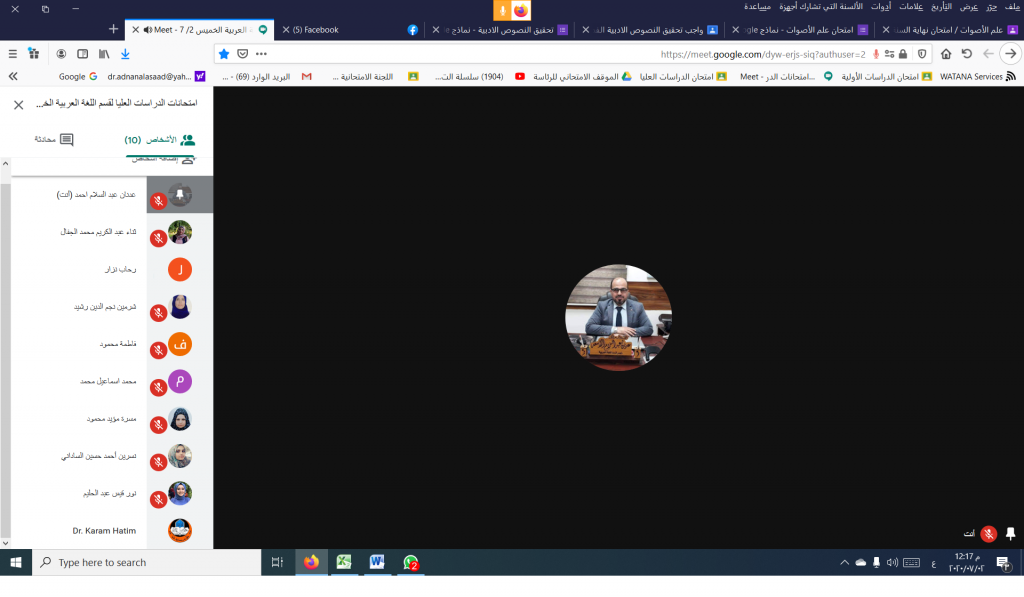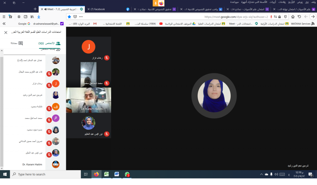 السيد مساعد رئيس جامعة الموصل للشؤون العلمية يتفقد (إلكترونياً) القاعات الامتحانية الالكترونية في قسم اللغة العربية / كلية التربية للبنات