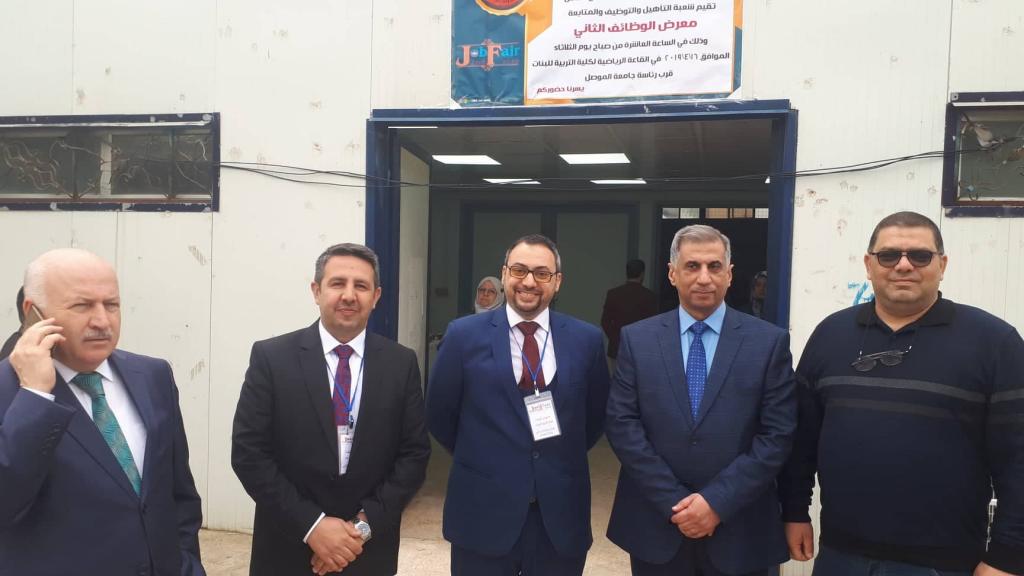 شاركت وحدة التأهيل والتوظيف والمتابعة التابعة لكليتنا في معرض الوظائف الثاني الذي افتتحه السيد رئيس جامعة الموصل أ.د. قصي الاحمدي في تمام الساعة العاشرة صباحا من يوم الثلاثاء الموافق 4/16/ 2019 وعلى القاعة الرياضية المغلقة لكلية التربية للبنات، وبحضور السيد معاون رئيس الجامعة للشؤون الادارية أ.د. اكرم البدو، والسيد وكيل مساعد رئيس الجامعة للشؤون العلمية أ.د. مفيد يونس، ورئيس شعبة التأهيل والتوظيف والمتابعة د. وسام، وبمشاركة العديد من شركات القطاع الخاص.