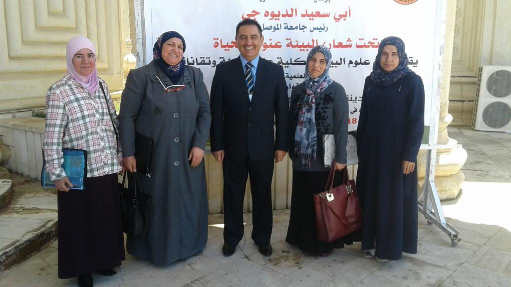 برعاية الاستاذ الدكتور أبي سعيد الدوه جي رئيس جامعة الموصل وتحت شعار "البيئة عنوان الحياة" أقامت كلية علوم البيئة وتقناتها ندوتها العلمية والموسومة بـ"بيئة الموصل امانة في اعناقنا"، وقد مثل كلية التربية للبنات وفد مكون من الاساتذة التالية اسمائهم : أ.م.د.ابتهاج زكي سليمان أ.م.د.نجلة هشام طاهر أ.م.د.محمد سالم شيت م.د.رنا تحسين م.م.هبة علي الصباغ م.م.ميساء خير الدين م.م.فادية ارشد م.م.زينب حازم من قسم الكيمياء وم.م.محمود فائز من قسم علوم الحياة.