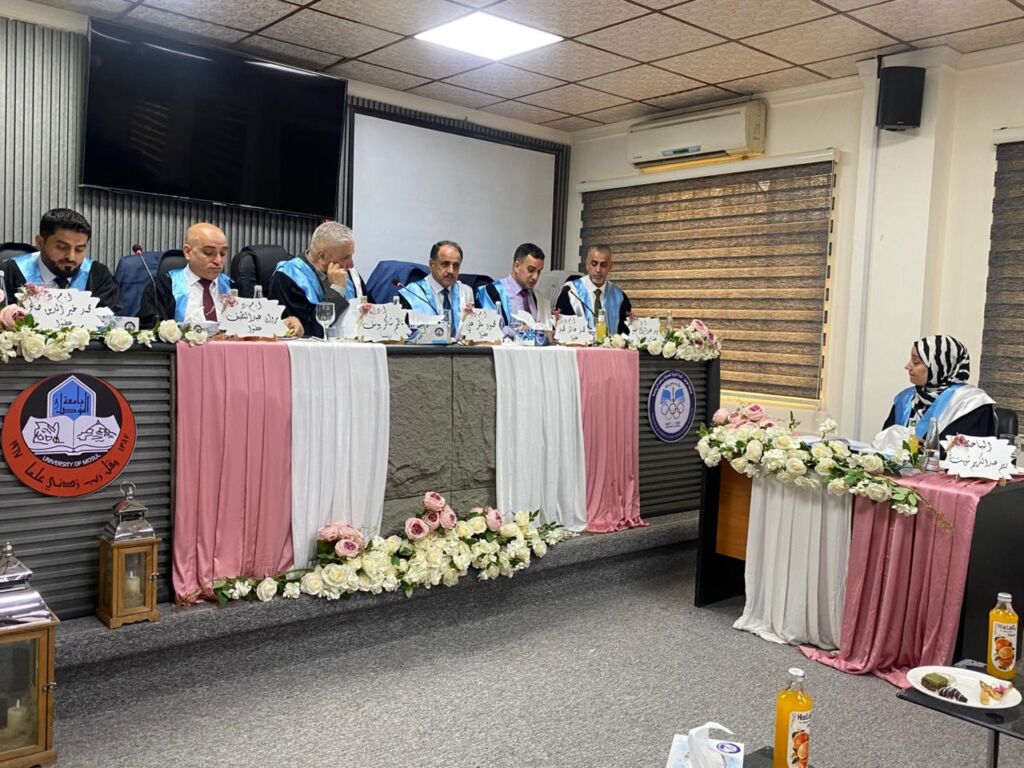 ترأس لجنة المناقشة الاستاذ الدكتور ناظم شاكر الوتار وعضوية كل من الاستاذ المساعد الدكتور مروان عبداللطيف عبدالجبار والاستاذ المساعد الدكتور محمود مطر علي الاستاذ المساعد الدكتور محمد خير الدين صالح والاستاذ المساعد الدكتور محمد خالد محمد داؤد ، وبأشراف وعضوية الأستاذ الدكتور مؤيد عبدالرزاق حسو .