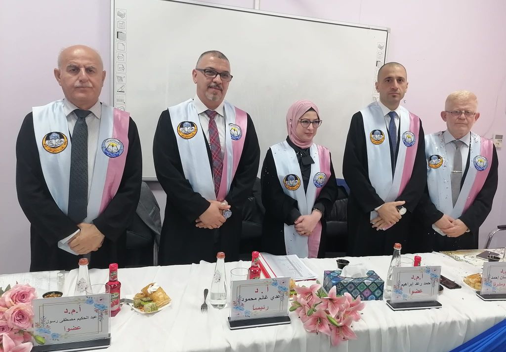وعضوية كل من الأستاذ الدكتور محمد إسماعيل محمد إسماعيل، والأستاذ المساعد الدكتور عبد السلام مرعي جاسم محمد، وبإشراف وعضوية الأستاذ المساعد الدكتور محمد محمود سعيد ذنون.