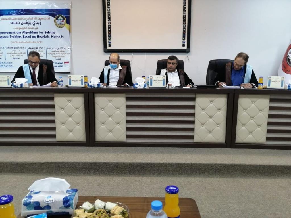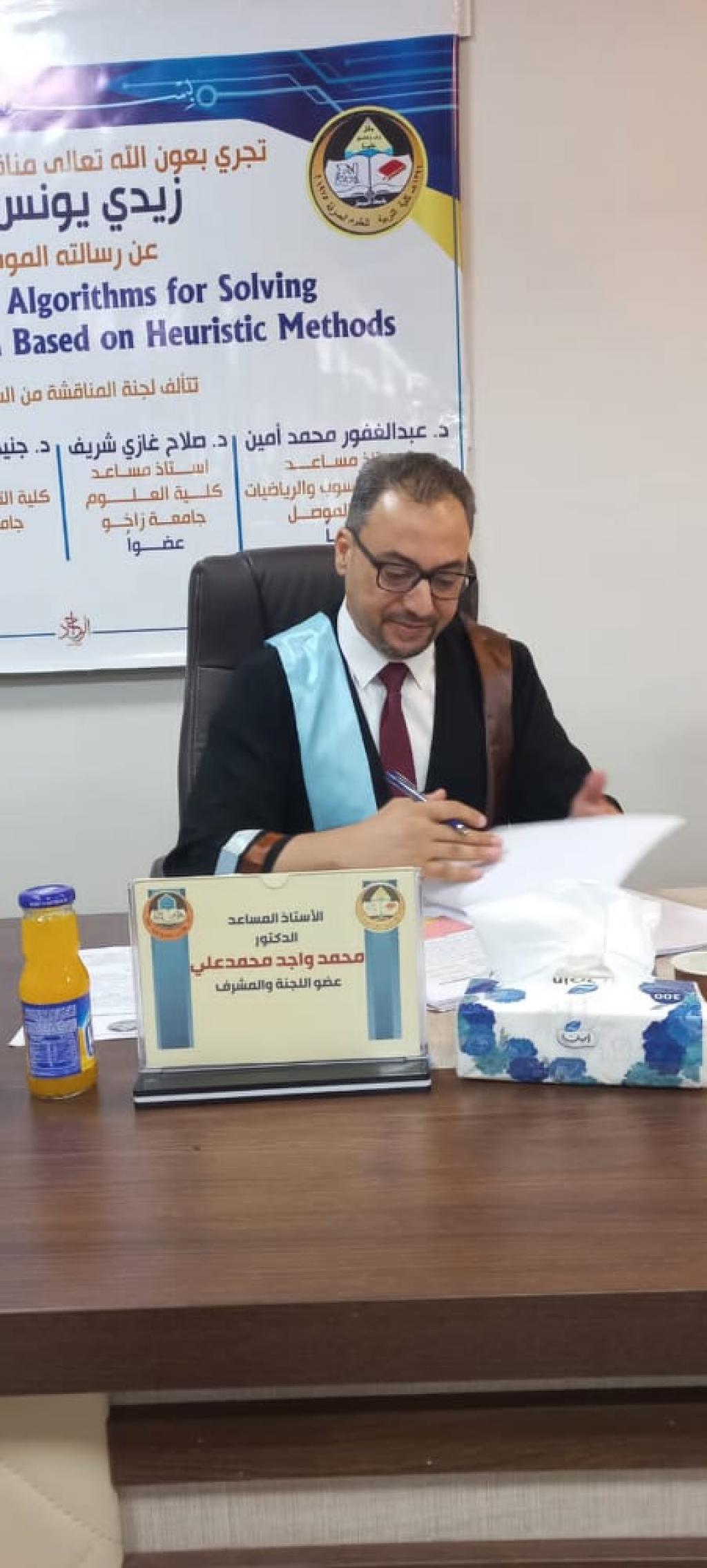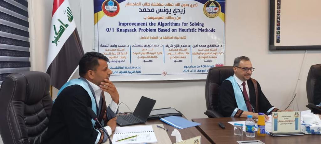جرت مناقشة طالب الماجستير “زيدي يونس محمد” في رسالته الموسومة “خوارزميات محسنة لحل مشكلة حقيبة الظهر بناءً على طرق إرشادية”، والتي جرت تحت اشراف الاستاذ المساعد الدكتور محمد واجد محمدعلي، وذلك يوم الثلاثاء الموافق 31 آب 2021، وعلى قاعة المناقشيات في كلية التربية للعلوم الصرفة، هدفت الرسالة إلى تسليط الضوء على المتطلبات والقدرات الخاصة بكل طريقة من طرق “حل مسألة حقيبة الظهر” من أجل مساعدة العلماء والباحثين في اختيار النهج الأنسب لمتطلباتهم. كما تم اقتراح اجراء تحسين لخوارزمية البرمجة الديناميكية لإيجاد الحل الأمثل لمسألة “حقيبة الظهر”، فضلاً عن اقتراح وتنفيذ خوارزمية موازية باستخدام حاسوب متعدد النوى. اضافة إلى اقتراح خوارزمية سريعة جديدة لحل المسألة المذكورة ، إذ تم تقسيم مجموعة البيانات S إلى مجموعتين أو أكثر بناءً على توزيع قيمها وحسب دالة اللياقة F. تم أيضًا، اختبار أوزان العناصر بالإضافة إلى اوزان المجموعات بحيث تكون أكبر من أو تساوي استيبعاب الحقيبة. اظهرت النتائج ان مناهج الجدولة والتقسيم للخوارزميات المقترحة قد قدّم تحسينًا كبيرًا في الأداء العام للخورازميات المقترحة.ترأس لجنة المناقشة الاستاذ المساعد الدكتور عبد الغفور محمد أمين من كلية علوم الحاسوب والرياضيات وعضوية كلاً من الاستاذ المساعد الدكتور صلاح غازي شريف من كلية العلوم/جامعة زاخو والمدرس الدكتور جنيد ادريس مصطفى من كلية التربية للعلوم الصرفة وبإشراف وعضوية الاستاذ المساعد الدكتور محمد واجد محمد علي من كلية التربية للبنات/جامعة الموصل، وقد تم قبول رسالة الماجستير فالف الف مبروك للطالب والمشرف على هذا الإنجاز العلمي.
