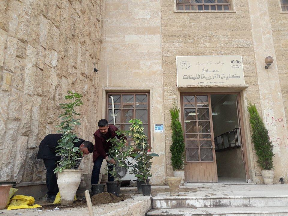 تحت شعار الحملة التطوعية لزراعة حدائق الجامعة والكليات ……..تعاون الدكتور فؤاد سالم اسماعيل مع اللجنة التطوعية في كليتنا (م.د.محمد غانم ،م.د.فراس محمد بشير ،م.د.جيهان يحيى ، م. انوار فخري ،م.رشا نزار ،م.م. رنا سهيل،م. م.حماد شهاب ونخبة من الأعضاء ) لإتمام أعمال حملة التشجير التي تضمنت (شراء نباتات اخرى، تبديل تربة النباتات وتسميدها ، تقليب التربة وسقي النباتات ) وذلك في يوم الاربعاء الموافق ٢٠١٨/٢/٢٨.