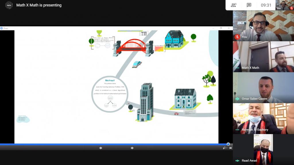 ضمن التعاون المشترك بين جامعتي الموصل وتكريت، جرت يوم الثلاثاء الموافق 8 ايلول 2020 مناقشة رسالة ماجستير للباحث “وارف بدر باسم يحيى” في رسالته الموسومة “طرائق هجينة جديدة لحل نموذج مشكلة البائع المتجول القائم على الطريقة الاسترشادية” في كلية التربية للعلوم الصرفة وباشراف مشترك للاستاذ المساعد الدكتور محمد واجد من كلية التربية للبنات والاستاذ المساعد الدكتور غضان عزالدين عارف رئيس قسم الرياضيات / كلية التربية للعلوم الصرفة / جامعة تكريت، وقد تشكلت لجنة المناقشة برئاسة الاستاذ الدكتور رحيم احمد منصور، وعضوية الاستاذ المساعد الدكتور عمر صابر قاسم والاستاذ المساعد الدكتور رعد عواد حميد، وبعد مناقشة رصينة علمية تم قبول الرسالة ومنحت درجة الماجستير للباحث وبتقدير “امتياز”، ومن الجدير بالذكر انه تم نشر نتائج الرسالة في اكثر من بحث ، اذ تم نشر البحث الاول في مجلة علمية عالمية، وتم قبول نشر للبحث الثاني في مجلة عالمية ضمن مستوعبات سكوبص، وتم تقديم البحث الثالث لمجلة Q3 ضمن مستوعبات سكوبص.الهدف الأول مم هذه الرسالة هو عرq متطلبات وقدرات طرائق مختلفة لحل مشكلة البائع المتجول، وذلك من اجل توجيه الباحثين لاختيار الطريقة الأنسب لاحتياجاتهم الخاصة. من جهة اخرى ، تُعد طريقة مستمرة النمل ACO إحدى الطرائق الارشادية التي لديها قدرة كبيرة على الوصول إلى حل TSP الأمثل. وهذه الطريقة مستنبطة من السلوك الطبيعي للنمل في الطبيعة بناء على تحليل سلوك النمل الحقيقي الذي يبحث عن الطعام وتخزينه في المستعمرة. الهدف الثاني من هذه الرسالة هو اقتراح خوارزمية هجينة جديدة لحل مسألة TSP، وذلك من خلال إنشاء خوارزمية هجينة تتكون من خوارزميتين هما ACO وضم الجوار وتسميتها بـ NACO. تم الحصول على تحسين في الحلول من خلال مقارنتها بالخوارزمية الأصلية لمستعمرة النمل خاصة في تقليل العمليات الحسابية والوقت. بالإضافة إلى ذلك، تقدم هذه الرسالة خورازمية متوازية جديدة لـNACO، وتنفيذها كبرنامج متوازي عالي الكفاءة لـ TSP باستخدام حاسبة متعددة النواة. اذ تم الاستفادة من العمليات المستقلة لكل نملة وتنفيذ الخوارزمية المتوازية باستخدام المكتبة الخاصة بادوات التوازي في برنامج MATLAB .