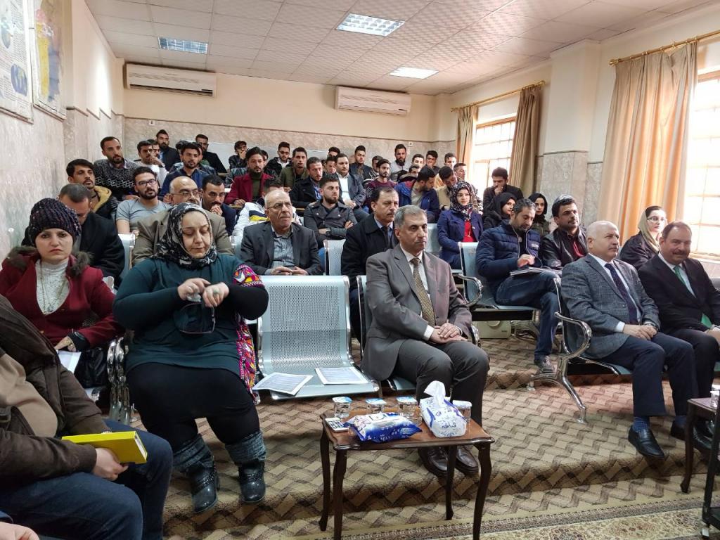 حضرت الاستاذ المساعد الدكتورة شذى باسل المعاون الاداري لكليتنا المحاضرة التدريبية للصحفيين الشباب في مناطق النزاع ضمن برنامج المحترفين الامريكيين الزائرين VAP والتي اقامها قسم الاعلام في كلية الاداب في جامعة الموصل في رئاسة جامعة الموصل / قاعة التحسس النائي يوم الخميس الموافق 22 / 2/ 2018.