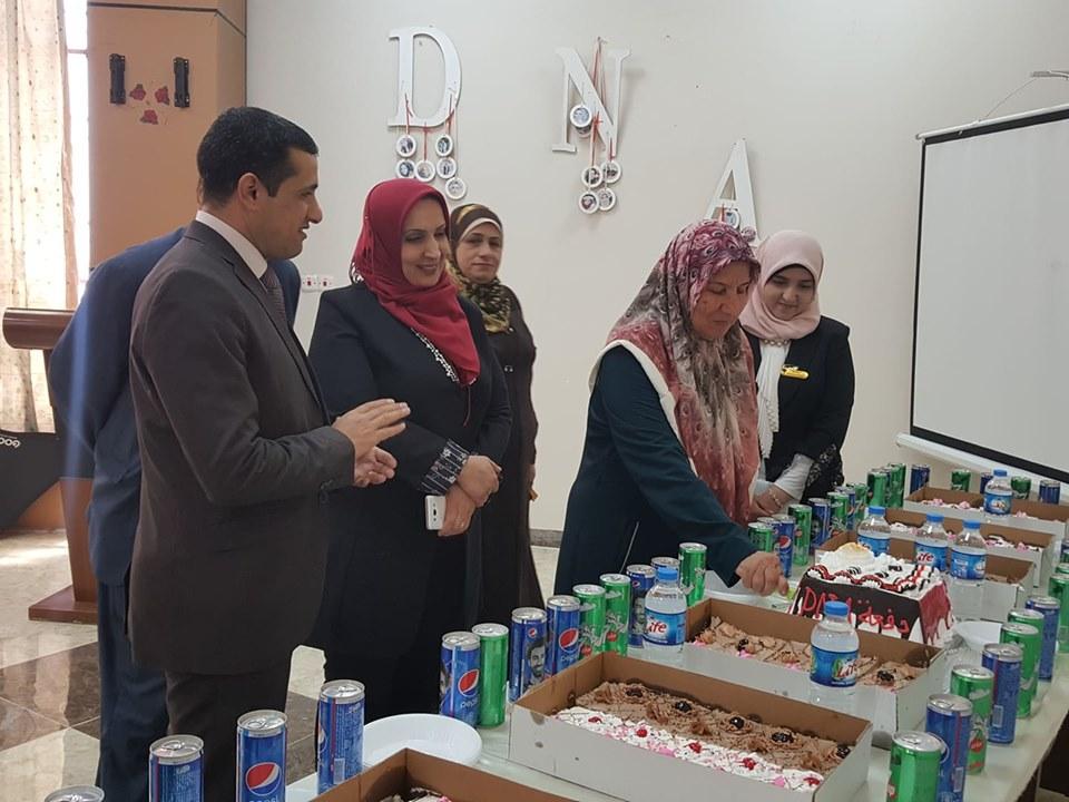 تعبيراً عن حبهم واعتزازهم ووفائهم أقام طالبات المرحلة الرابعة في قسم علوم الحياة حفلاً تكريمياًللسيدة عميد كليتهم وللسيدة المعاون العلمي وللسيد رئيس قسم وللسيدات والسادة التدريسيين، اذ ابتدأت الطالبة معزز كلمتها بالثناء والتقدير لمن درسهم ووقف معهم وعلمهم وساندهم لغاية ان اوصلهم لمرحلة التخرج، فذكرت على رأسهم أ.م.د. زاهدة عبدالله محمد وأ.م.د. رضاء ناظم حمو ود. فؤاد سالم وأ.د. اياد جاجان ود. لقاء، ود. اسيل ود. لبنى وجميع الكادر التدريسي للقسم، بعدها ألقت السيدة عميد الكلية كلمة أثنت فيها على الطالبات وعلى ادارة القسم والكادر التدريسي، تلاها السيد رئيس القسم في كلمة أثنى على جهود الطالبات وشكرهم على التفاتتهم اللطيفة، بعدها قامت أ.م.د. زاهدة عبدالله محمد بتقطيع قالب الحلوى والذي كان يحمل اسمها اعتزازهم بدور السيدة عميد الكلية طوال سنوات الدراسة.