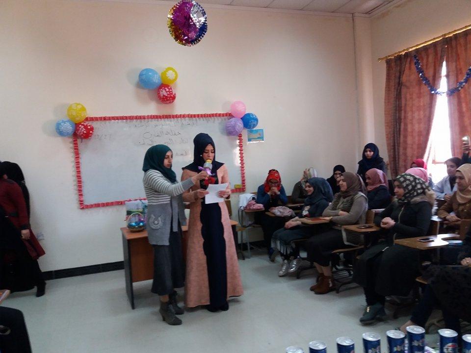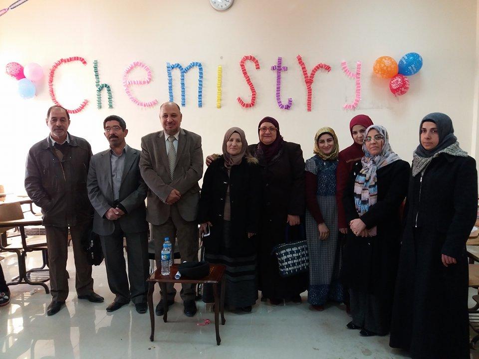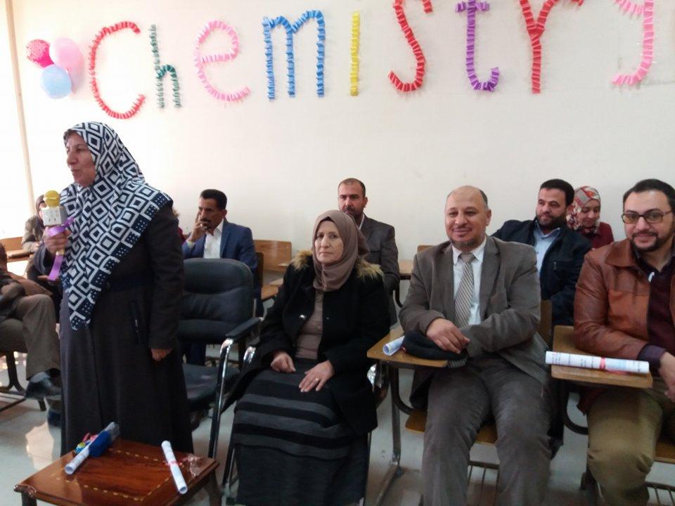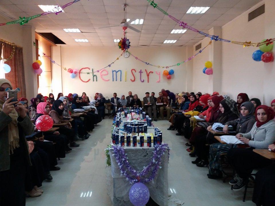 بحضور السيدة عميد كلية التربية للبنات والسيدة رئيس قسم الكيمياء اضافة الى اساتذة القسم اقامت الطالبات القسم حفلة تعارفالمرحلة الاولى، وقد افتتحت بتلاوة عطرة من آيات الذكر الحكيمتلته احدى الطالبات،ثم ألقت الدكتورة زاهدة عبداللهمحمدكلمة العمادة هنأت فيها الطالبات وحثتهم الى التفوق والنجاح، بعد ذلك قامت الدكتورة فرحة خلف بالقاء كلمة توجيهية ارشادية لطالبات القسم، بعد ذلك تخلل الحفل ألقاء ابيات شعرية ومسابقات متنوعة، اضافة الى فقرة انشاد النشيد الوطني "موطني" مما اضفى جمالية ورنقاً على فقرات الحفل الممتع نالت استحسان الجميع، تمنياتنا لطالباتنا كل التوفيق والنجاح في مراحلهم الدراسية.