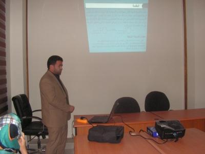 إلقاء حلقة دراسية بعنوان (العناصر الكيميائية الموجودة في جسم الانسان) من قبل (د. نجلة هشام طاهر) وذلك يوم الخميس المصادف 31-10-2013 .. وبحضور اعضاء الهيئة التدريسية في القسم