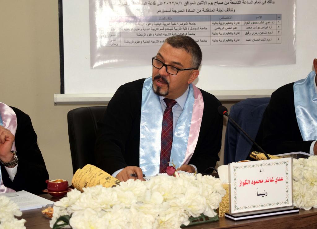 ناقشت كلية التربية للبنات / قسم التربية البدنية وعلوم الرياضة بجامعة الموصل رسالة الماجستير الموسومة (التوازن التنظيمي لكليات واقسام التربية البدنية وعلوم الرياضة في ضوء القيادة التبادلية من وجهة نظر اعضاء الهيئات التدريسية في الجامعات العراقية) للطالبة فرح فارس ادريس محمد الشرفاني ، صباح يوم الاثنين الموافق ٢٠٢٢/٨/١. في قاعة المناقشات والمؤتمرات في الكلية.وحضرت السيدة عميد الكلية الأستاذ الدكتورة ضمياء علي عبدالله ، والسيد معاون العميد للشؤون العلمية الأستاذ الدكتور داود حبو محمد جانباً من المناقشة، فضلاً عن عدد من تدريسيي الكلية وعدد من طالبات الدراسات العليا .تناولت الدراسة القيادة التبادليـة في المجـال التعليمي الرياضي الاكاديمي التي تتمثل في علاقة تبادلية بيـن التدريسيين وعمداء الكليات والمعاونين ورؤساء الأقسام في جميع كليات وأقسام التربية البدنية وعلوم الرياضة في العراق وما قد تحققه من توازن تنظيمي للكليات والاقسام والتدريسيين.كما هدفت الدراسة الى التعرف على درجة ممارسة القيادة التبادلية بأبعادها ودرجة التوازن التنظيمي بأبعاده. والتعرف على العلاقة ونسبة المساهمة بين القيادة التبادليـة بأبعادها والتوازن التنظيمـي لكليات واقسام التربية البدنية وعلوم الرياضة مـن وجهـة نظـر أعضاء الهيئات التدريسية.وتوصلت الدراسة الى ظهور مستوى عالٍ من القيادة التبادلية ودرجات عالية جداً من التـوازن التنظيمي، ووجود علاقة ونسبة مساهمة إيجابية ذات دلالة معنوية بين القيادة التبادليـة والتوازن التنظيمـيوتألفت لجنة المناقشة منأ.د عدي غانم محمود الكواز جامعة الموصل / كلية التربية البدنية وعلوم الرياضة رئيساأ.د نبراس يونس محمد جامعة الموصل / كلية التربية للبنات/ قسم التربية البدنية وعلوم الرياضة عضواأ.م.د شاهين رمزي رفيق جامعة كركوك / كلية التربية البدنية وعلوم الرياضة عضواأ.م.د ثابت احسان احمد جامعة الموصل / كلية التربية للبنات/ قسم التربية البدنية وعلوم الرياضة عضوا ومشرفاوبعد مناقشة علمية مستفيضة ، ودفاع الطالبة عن رسالتها ، أجزيت بتقدير ممتاز .