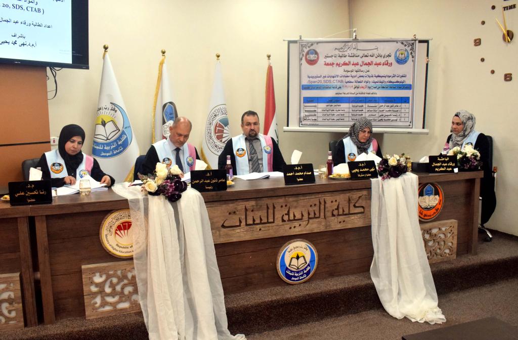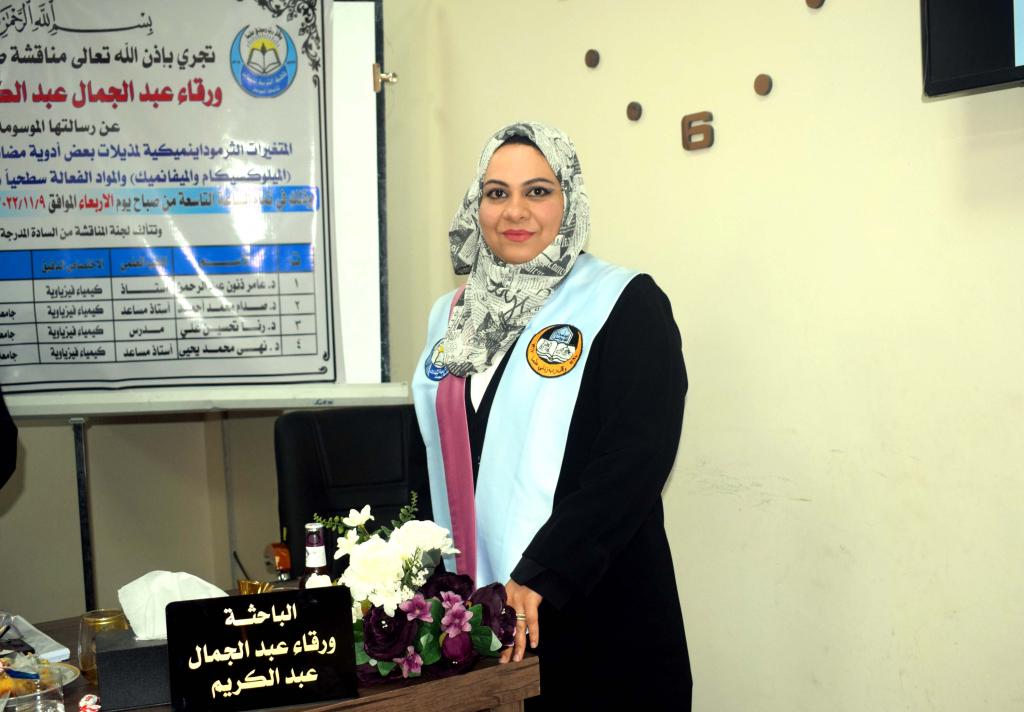 ناقش قسم علوم الكيمياء بكلية التربية للبنات في جامعة الموصل رسالة الماجستير الموسومة (المتغيرات الثرموداينيمكية لمذيلات بعض أدوية مضادات الالتهابات غير الستيرويدية الميلوكسيكام والميفانميك والمواد الفعالة سطحيا Span 20, SDS, CTAB) ، للطالبة ورقاء عبد الجمال عبد الكريم، يوم الأربعاء الموافق ٩ / ١١ / ٢٠٢٢ ، في قاعة المناقشات والمؤتمرات في عمادة الكلية .تناولت الرسالة قياس الشد السطحي للمحاليل المائية لبعض ادوية مضادات الالتهابات غير الستيرويدية مثل الميلوكسيكام وحامض الميفانميك بتراكيز مختلفة لكل دواء ودراسة تأثير اضافة المواد الفعالة سطحيا الغير ايونية مثل Span20 والمادة الفعالة السالبة الشحنة مثل SDS والمادة الفعالة سطحيا الموجبة الشحنة مثل CTABتقدير تراكيز المذيلات الحرجه CMC للمحاليل المائية للاظوية والمواد الفعالة سطحياكما درست تأثير درجة الحرارة على قيمCMC و تقدير المتغيرات الثرموداينميكية (الطاقة الحرة لعملية تكوين المذيلات والطاقة الحرة للامتزاز، وحرارة التفاعل، والانتروبي) عند CMCكذلك درست تأثير الدوال الحامضية الفسيولوجية للمحاليل المائية المقاسةحيث ادت اضافة المواد المواد الفعالة سطحيا الى زيادة قابلية ذوبان الادوية (الميلوكسيكام وحامض الميفانميك) وامتصاصها في الجسم عن طريق قياس الطاقة الحرة لتكوين المذيلات كمؤشر للذوبانية.وتألفت لجنة المناقشة من الأساتذة :١- الأستاذ الدكتور عامر ذنون عبدالرحمن رئيساً.٢- الأستاذ المساعد الدكتور صدام محمد احمد عضواً.٣- المدرس الدكتورة رنا تحسين علي عضواً.٤- الأستاذ المساعد الدكتورة نهى محمد يحيى عضواً ومشرفاً.وبعد مناقشة علمية مستفيضة ودفاع الطالبة عن رسالتها أجيزت الرسالة بتقدير ا