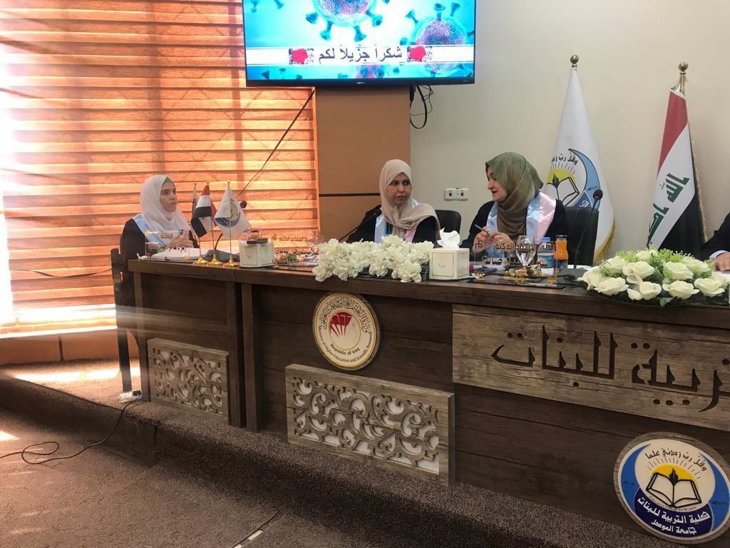 ناقش قسم الكيمياء بكلية التربية للبنات في جامعة الموصل رسالة الماجستير الموسومة ( دراسة كيموحيوية للإنترلوكين – 10- وعامل نخر الورم ألفا في أمصال دم المتعافين من فايروس كورونا في محافظة نينوي) ، للطالبة زهراء عامرأحمد ، يوم الخميس الموافق ٢٠ / ١٠ / ٢٠٢٢ ، في قاعة المناقشات والمؤتمرات بمبنى عمادة الكلية.وأظهرت النتائج زيادة معنوية عند مستوى الاحتمال p≤0.05 في مصل مرضى فيروس كورونا والمتعافين الملقحين مقارنة بالاصحاء في مستويات كل معامل نخر الورم ٵلفا(TNF) لٵنترلوكين 10( L10 ( وبروتين سي التفاعلي (CRP) وانزيم الفوسفاتيز القلوي ALP)) في حين كان هناك انخفاض معنوي عند مستوى الاحتمال p≤0.05 في مستويات كل من الحديد(Fe) والكالسيوم(Ca) وفيتامينD3 والدهون الثلاثية (Tg) والكوليسترول الكلي(TotalCholesterol) وكوليسترول البروتين الدهني عالي الكثافة (HDL) والبروتين الدهني واطئ الكثافة جدا (VLDL) ومؤشر كتلة الجسم(BMI) .كما تضمنت الدراسة عزلا جزئيا لعامل نخر الورم الفا وانترلوكين 10 من مصل دم امراة سليمة متبرعة بعمر 26 عاما باستعمال التقنيات الحياتية المختلفة مثل الترسيب بكبريتات الامونيوم70% والديلزة من خلال تطبيق كروماتوغرافيا التبادل الايوني وذلك بتمرير النموذج على عمود التبادل الايوني ذي الابعاد( 2×30cm ) الحاوي على المبادل الايوني السالب DEAE-Cellulose اذ حصل على حزمة بروتينية واحدة وباستعمال تقنية الهجرة الكهربائية تم الحصول على حزمتين للبروتين وعين الوزن الجزيئي للانترلوكين 10 (70kDa)والوزن الجزيئي لعامل نخر الورم الفا ((50kDa.وتألفت لجنة المناقشة من الأساتذة :١- الأستاذ الدكتور سيران ستار صالح رئيساً.٢- الأستاذ المساعد الدكتور نشوان إبراهيم عبو عضواً.٣- المدرس الدكتور رنا فاضل جاسم عضواً.٤- الأستاذ المساعد الدكتورة ليلاس فرحان بديوي عضواً ومشرفاً.وبعد مناقشة علمية مستفيضة ودفاع الطالبة عن رسالتها أجيزت بتقدير امتياز.