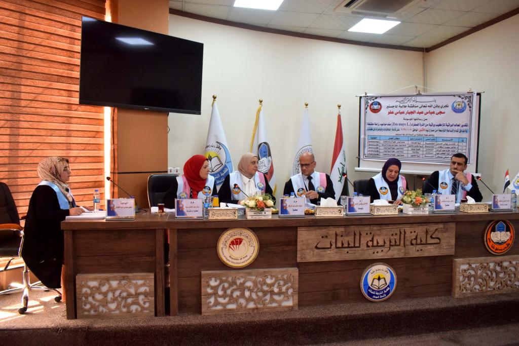 ناقش قسم علوم الحياة بكلية التربية للبنات في جامعة الموصل رسالة الماجستير الموسومة (تقدير المعالم الوراثية لتراكيب وراثية من الذرة الصفراء Zea mays L عند مواعيد زراعة مختلفة) ، للطالبة سجى عباس عبد الجبار ، يوم الاثنين الموافق ٢١ / ١١ / ٢٠٢٢ ، في قاعة المناقشات والمؤتمرات بمبنى عمادة الكلية .تضمنت الدراسة عشرة تراكيب وراثية من محصول الذرة الصفراء Zea mays L.)) والتي مصدرها شركة الدبانة للزراعة الحديثة المحدودة زرعت البذور خلال الموسم الزراعي الخريفي لعام 2020-2021 باستخدام تصميم R.C.B.D نفذت في الموقعين الأول في محافظة نينوى (الرشيدية) والثاني في محافظة أربيل وبثلاث مكررات وبثلاث مواعيد لكل موقع وثم دراسة الصفات الكمية والنوعية للنبات.والهدف من الدراسة:تقويم أداء التراكيب الوراثية الجديدة في موقعين متباينين وباستخدام ثلاث مواعيد زراعة مختلفة.تقدير التباينات المظهرية والوراثية والبيئية، معامل الاختلاف الوراثي والمظهري والتوريث بالمعنى الواسع والتحسين الوراثي المتوقع.تقدير معاملات الارتباطات الوراثية والبيئية والمظهرية.وتألفت لجنة المناقشة من الأساتذة :١- الأستاذ الدكتور شامل يونس حسن رئيساً.٢- الأستاذ الدكتورة هاجر سعيد إسكندر عضواً.٣- المدرس الدكتورة علياء حازم عبد الرزاق عضواً.٤- المدرس الدكتورة منال عبدالمطلب عضواً ومشرفاً.٥- الأستاذ الدكتور محمد صبحي مصطفى عضواً ومشرفاً.وبعد مناقشة علمية مستفيضة ودفاع الطالبة عن رسالتها أجيزت بتقدير امتياز.