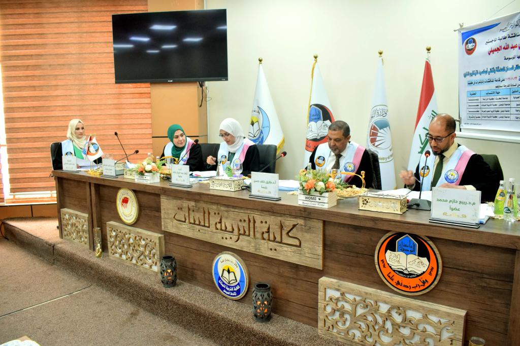 ناقش قسم علوم الحياة بكلية التربية للبنات في جامعة الموصل رسالة الماجستير الموسومة (تقييم التغيرات النسجية والإنتاجية في بعض أعضاء طائر السمان المحدثة بثنائي أوكسيد التيتانيوم النانوي) ، للطالبة زينب نوري مهدي الجميلي ، يوم الثلاثاء الموافق ٢٢ / ١١ / ٢٠٢٢ ، في قاعة المناقشات والمؤتمرات بمبنى عمادة الكلية .استهدفت الدراسة معرفة التغيرات السلوكية للطيور مع أوزانها، ونسب الأداء الانتاجي والصفات النوعية للبيض، كذلك التغيرات الكيموحيوية في الدم، والتغيرات المرضية العيانية لأجنة الطيور المعاملة، وتقييم التأثيرات المرضية العيانية والنسجية في كبد وخصية طائر السمانCoturnix Coturnix japonica المحدثة بمادة ثنائي اوكسيد التيتانيوم النانويTio2NPSمع التشخيص الجزيئي بتقنيةRAPD- PCRوتألفت لجنة المناقشة من الأساتذة :١- الأستاذ الدكتور طارق خلف حسن رئيساً.٢- الأستاذ المساعد الدكتورة أزهار عبدالجبار حامد عضواً.٣- المدرس الدكتور ربيع حازم محمد عضواً.٤- المدرس الدكتورة ريا غالب السلطان عضواً ومشرفاً.وبعد مناقشة علمية مستفيضة ودفاع الطالبة عن رسالتها أجيزت بتقدير امتياز.