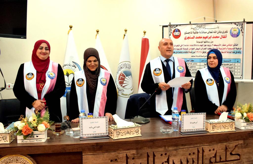 ناقش قسم علوم الحياة بكلية التربية للبنات في جامعة الموصل رسالة الماجستير الموسومة ( التأثير الوقائي لعقار الأوميكا 3 وزيت جوز الهند Cocos nucifera في التغيرات المرضية النسيجية والجزيئية لمشيمة وكبد الجرذان البيض الحوامل المسمنة تجريبيا وأجنتها ) ، للطالبة انفال محمد إبراهيم ، يوم الخميس الموافق ٨ / ١٢ / ٢٠٢٢ ، في قاعة المناقشات والمؤتمرات بمبنى عمادة الكلية .استهدفت الدراسة التحري عن تأثير سمنة الأمهات في إحداث التغييرات المرضية النسجية في كبد ومشيمة إناث الجرذان الحوامل وبعض أنسجة أجنتها فضلا عن دراسة المتغيرات الكيموحيوية المتمثلة بقياس مستوى الدهون في الدم والاجهاد التأكسدي في كبد ومشيمة الام وقياس أوزان الاجنة والمشيمة، كما تم دراسة التعبير الجيني لكل من جين عامل النمو الشبيه بالأنسولينIGF-1 وجين البروتين الناقل لعامل النمو الشبيه بالانسوين IGFBP-1 ودراسة التأثير الوقائي والعلاجي لعقار أوميكا 3 وزيت جوز الهند في معالجة هذه التغيرات. وقد أظهرت نتائج الدراسة أن عقار اوميكا 3 وزيت جوز الهند قد خفض من التخريبات النسجية الناتجة عن السمنة وخفض من مستويات الدهون في الدم وقلل من الاجهاد التاكسدي في كبد ومشيمة الام المتمثلة بانخفاض تراكيز المانوالديهايد وزيادة تركيز الكلوتاثايون المتسببة عن السمنة كما أظهرت نتائج الدراسة زيادة في التعبير الجيني لكل من الجينين IGF-1 و IGFBP-1وتألفت لجنة المناقشة من الأساتذة :١- الأستاذ الدكتور أمير محمود طه رئيساً.٢- الأستاذ الدكتورة خلود ناجي رشيد عضواً.٣- المدرس الدكتورة ريا غالب سعد الله عضواً.٤- المدرس الدكتورة لقاء حسين علي عضواً ومشرفاً.وبعد مناقشة علمية مستفيضة ودفاع الطالبة عن رسالتها أجيزت بتقدير امتياز.