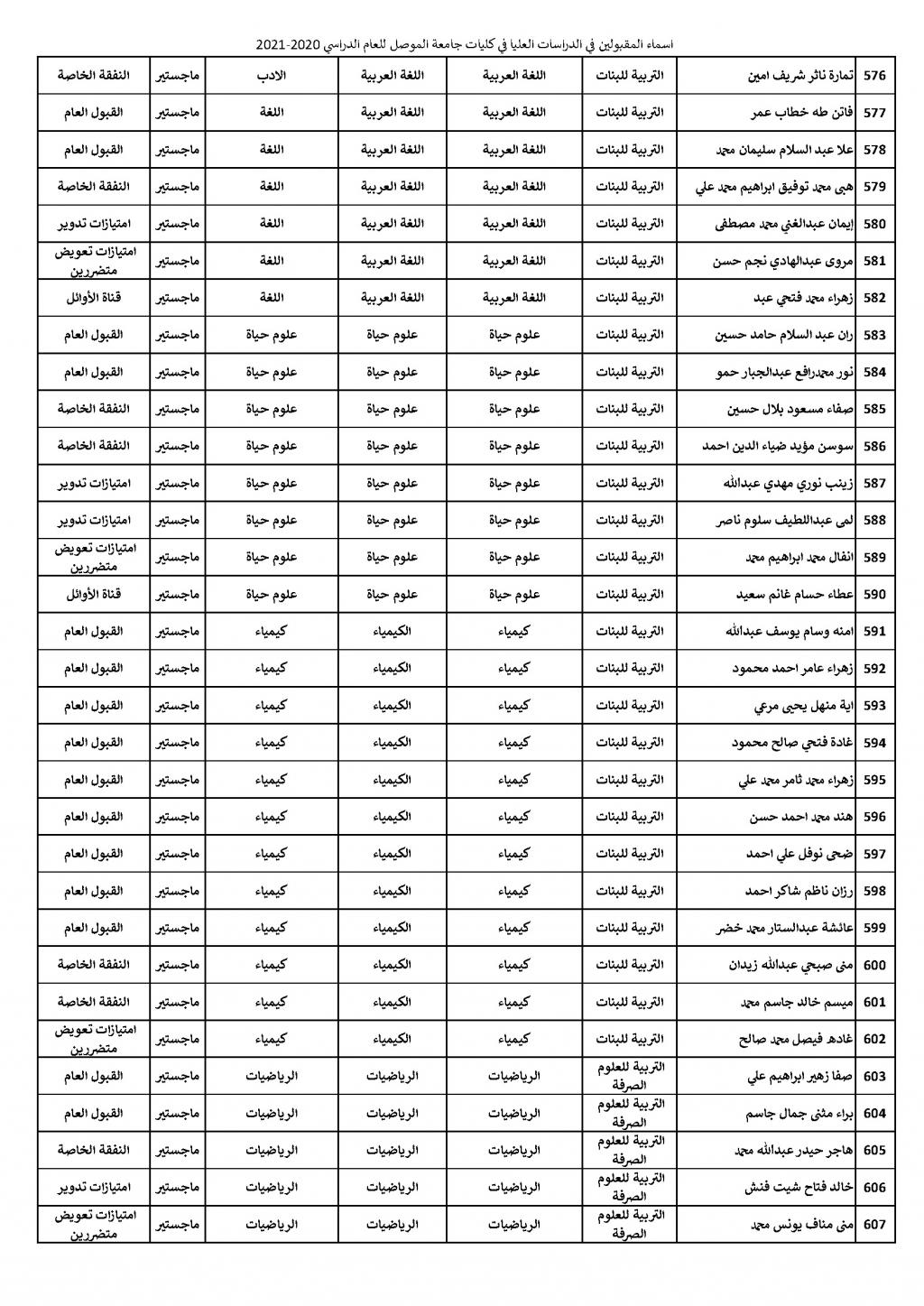صدر الامر الجامعي الخاص باسماء الطالبات المقبولات في الدراسات العليا للعام الدراسي 2020-2021 في كلية التربية للبنات في الاختصاصات المبينة إزاء اسم كلٌ منهنّ، مبارك للطالبات المقبولات، مع خالص التمنيات بالتوفيق والنجاح في مسيرتهنّ الدراسية العلمية الجديدة.