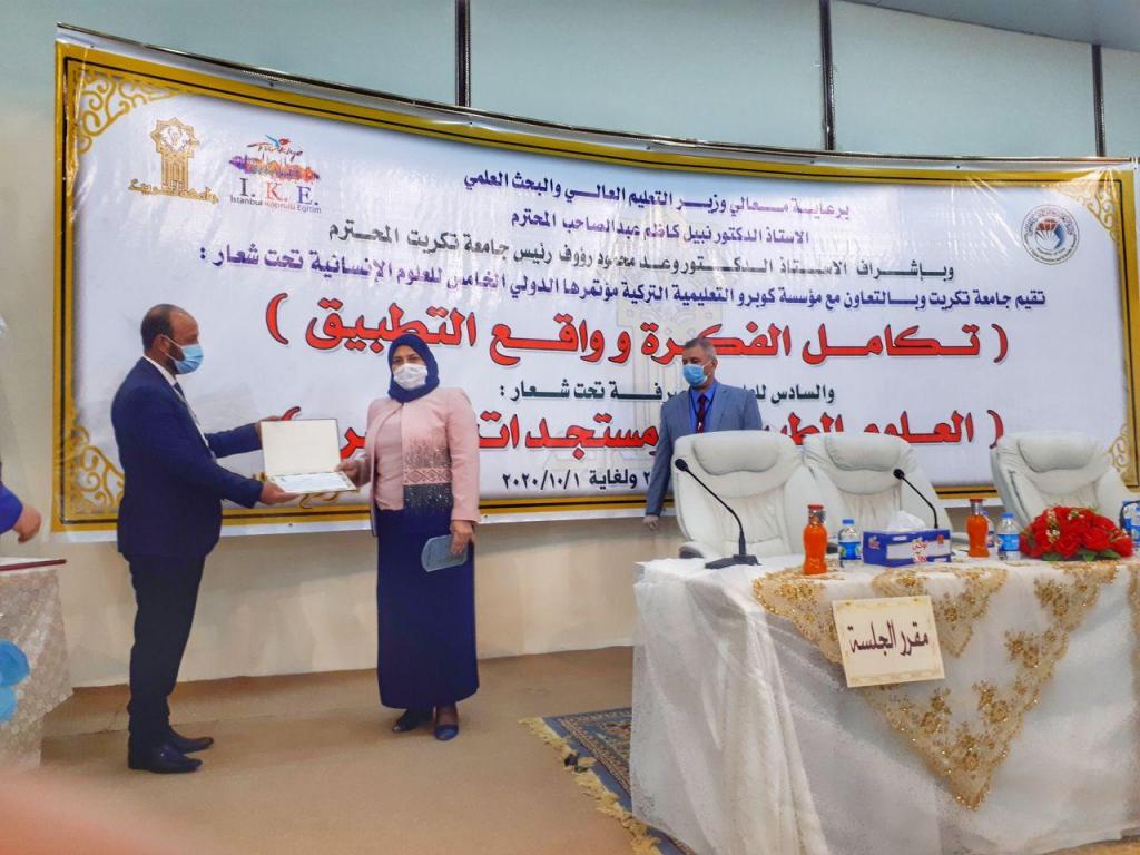 عمادة كلية التربية للبنات تشارك ممثلة عن جامعة الموصل في المؤتمرين الدوليين الخامس للعلوم الإنسانية والاجتماعية والسادس للعلوم الطبيعية وتطبيقاته والمقامين في جامعة تكريت بالتعاون مع مؤسسة كوبرو التعليمية التركية