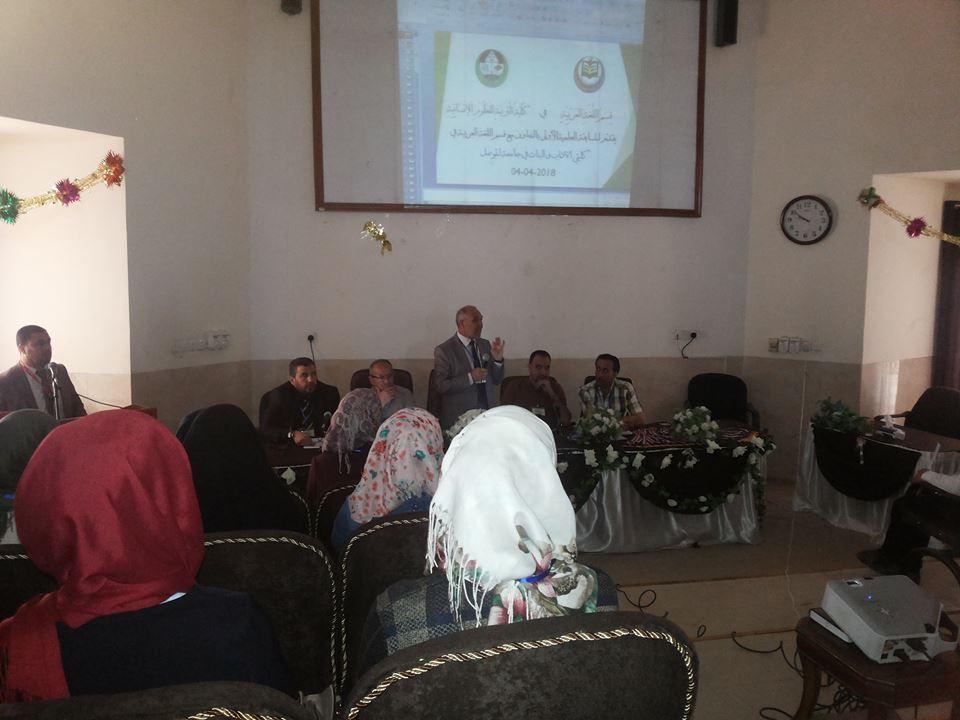 فازت طالبات قسم اللغة العربية / كلية التربية للبنات بالمرتبة الأولى في المسابقة الفرقية التي نظمتها أقسام اللغة العربية في كليات الآداب والتربية للعلوم الإنسانية والتربية للبنات صباح يوم الأربعاء الموافق 4 نيسان 2018م ، على قاعة المؤتمرات في كلية التربية للعلوم الإنسانية ، وحضر المسابقة عمداء الكليات الثلاث ورؤساء أقسام اللغة العربية فيها وعدد كبير من الأساتذة والطلبة ، وقد أبدت طالبات كلية التربية للبنات تفوقا ملحوظا في الجوانب اللغوية والأدبية كافة ، فضلا عن التحلي بأخلاقيات متميزة في تقبل آراء المحكمين ، والالتزام بسلوكيات رفيعة في تشجيع فريقهنمبارك لكليتنا هذا الانجاز الكبير الذي ان دل فانه يدل على الادارة المحنكة للكلية، وكفاءة الكادر التدريسي العالية لقسم اللغة العربية فضلاً عن ذكاء الطالبات النجيبات المتفوقات، خاصة وان المنافس كان كلية عريقة باساتذتها وعمقها الراسخ.
