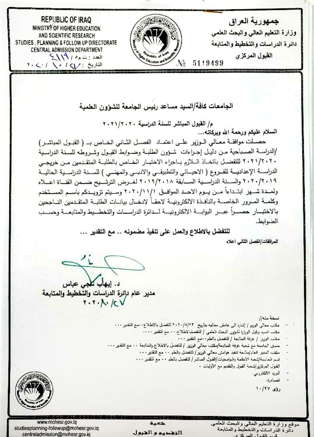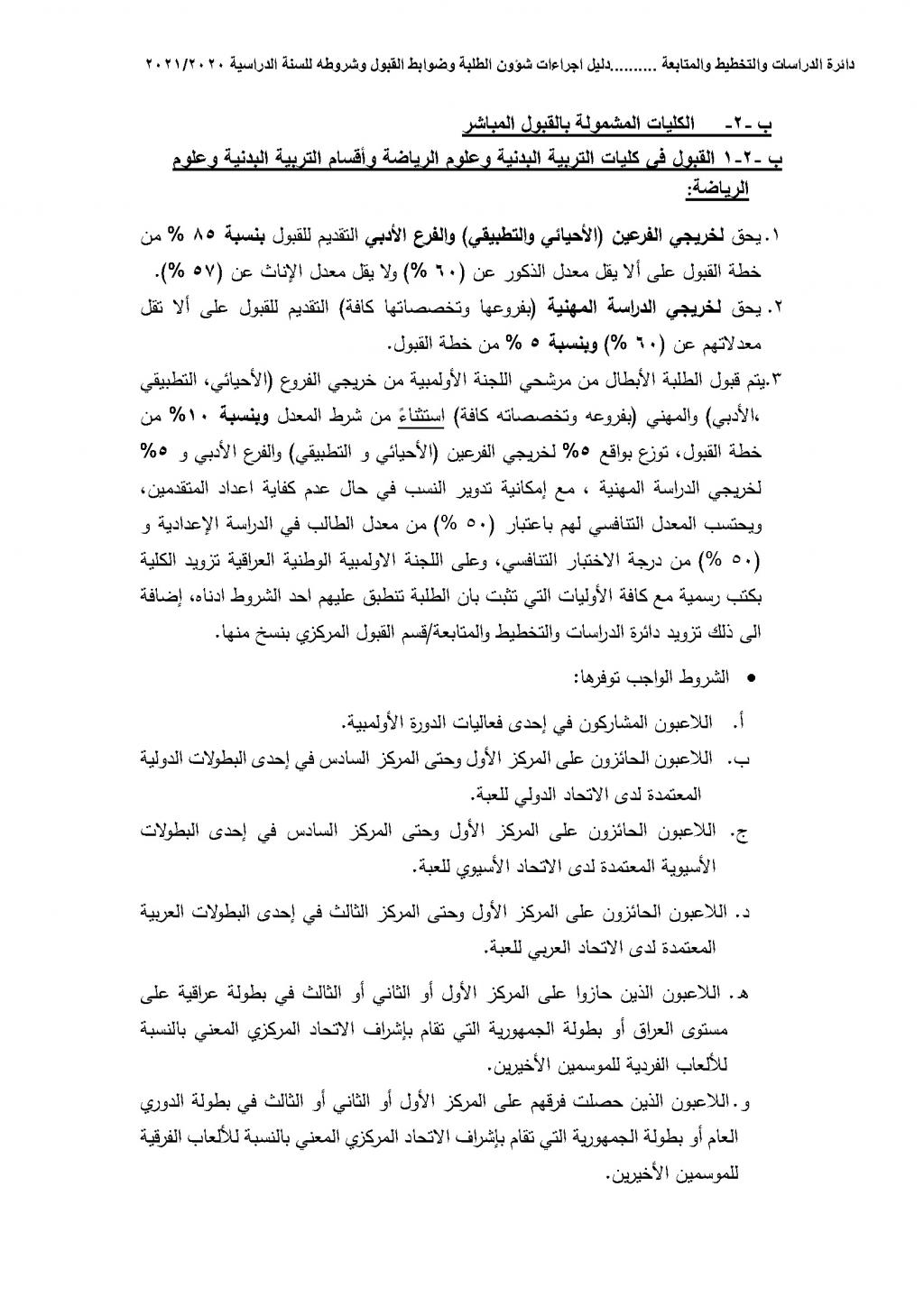 قسم التربية البدنية وعلوم الرياضية في كلية التربية للبنات يستعد لفتح قناة القبول المباشر للعام الدراسي 2020-2021 وحسب الشروط المرفقة