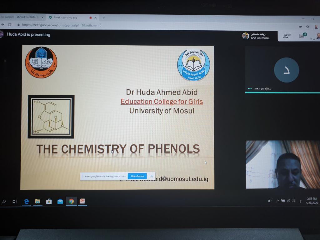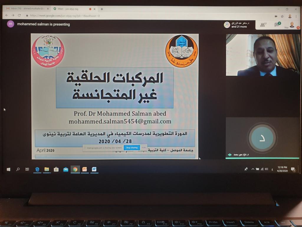 قسم الكيمياء يختتم أعمال الدورة العلمية التدريبية الالكترونية لمدرسي مديرية تربية نينوى